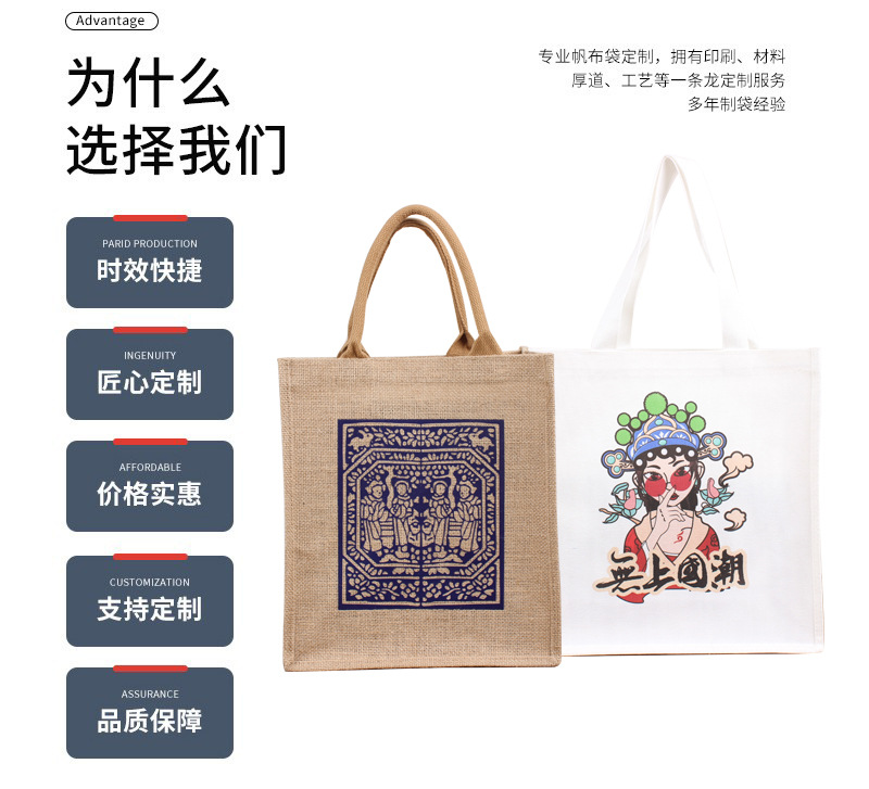麻布袋定制手提覆膜防水手绘DI复古棉绳黄麻布袋无印良品