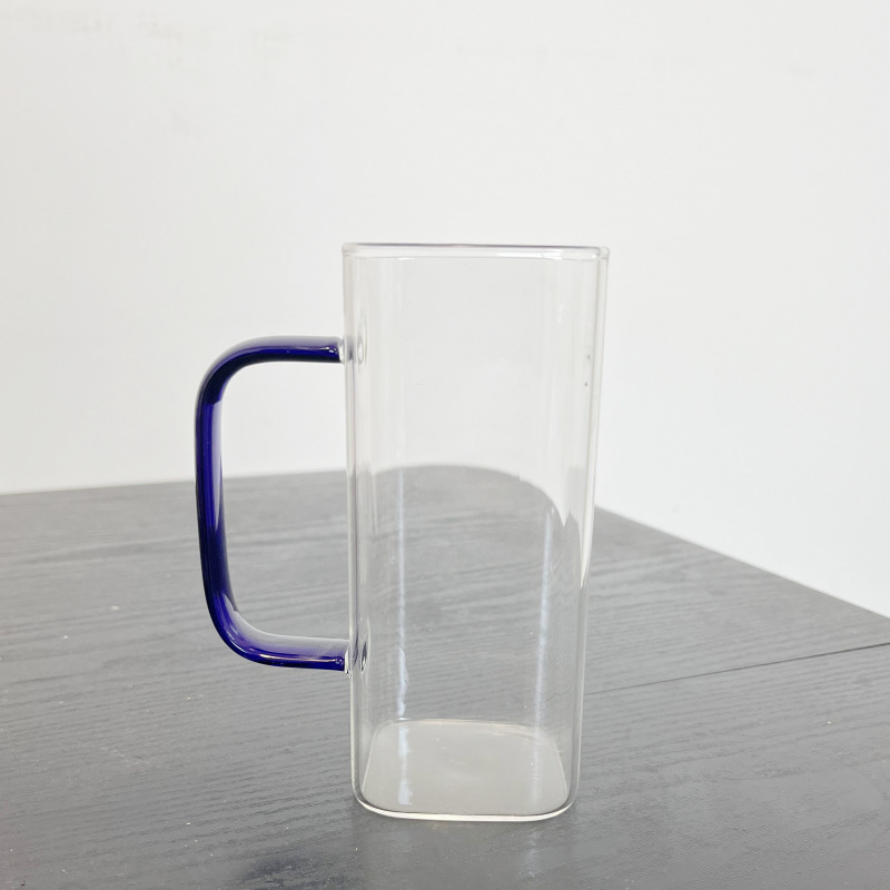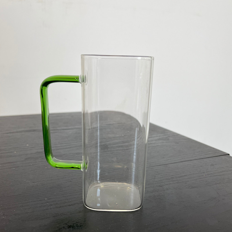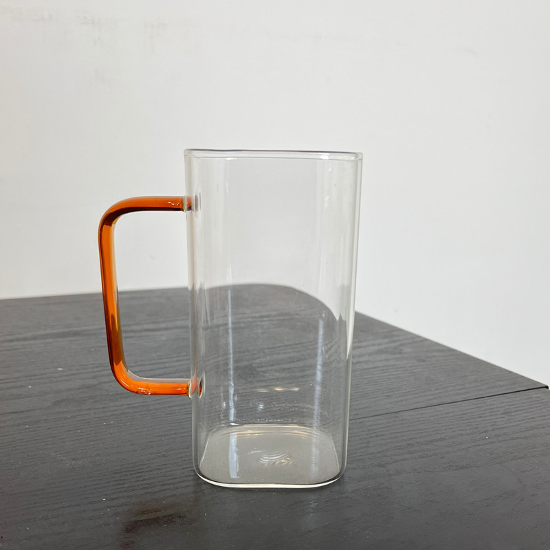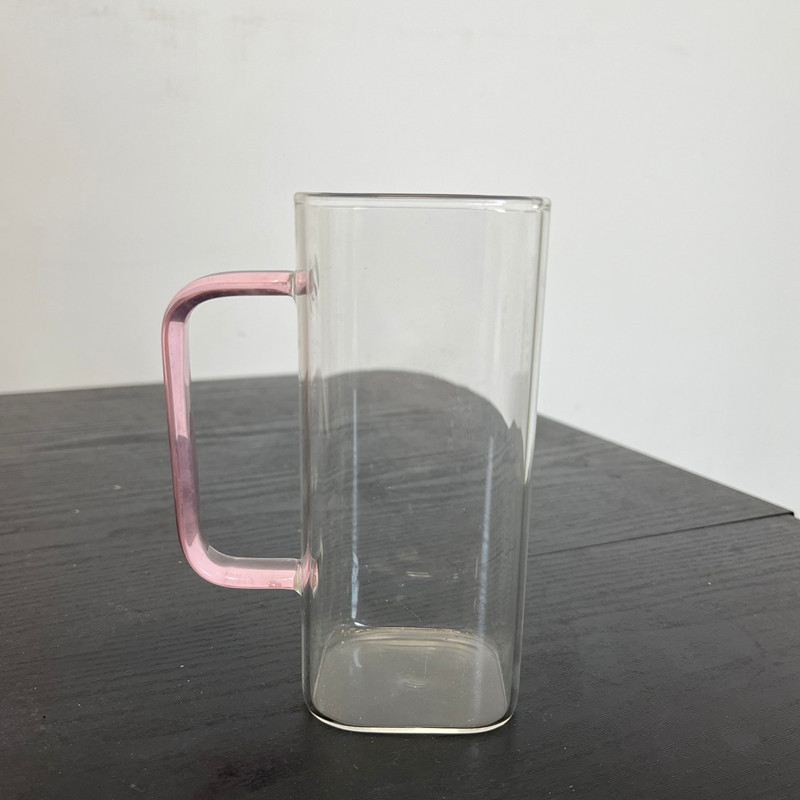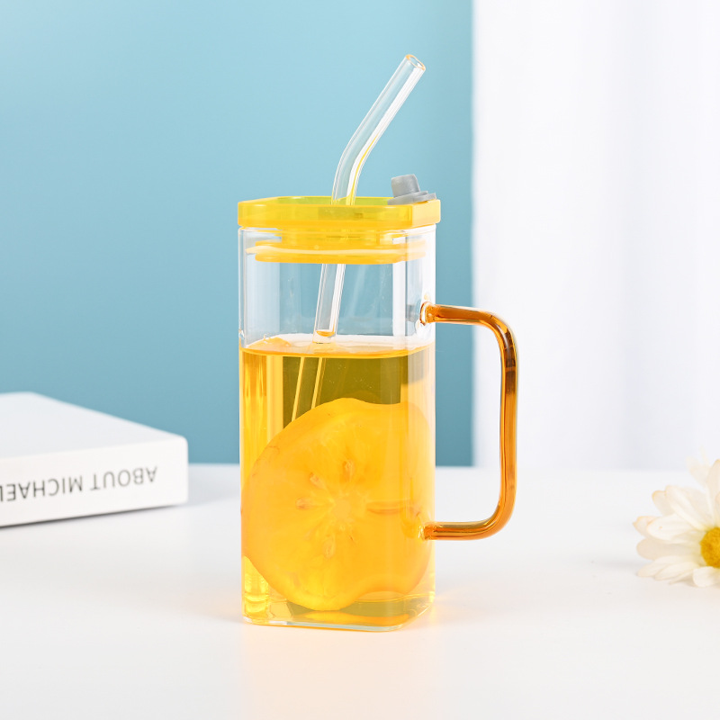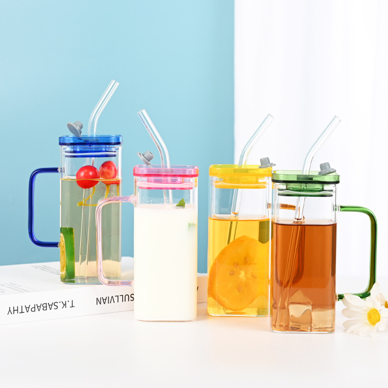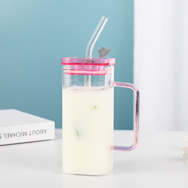 ins饮料塑料盖方杯玻璃杯带把彩色果汁牛奶喝水清新简约吸管水杯
