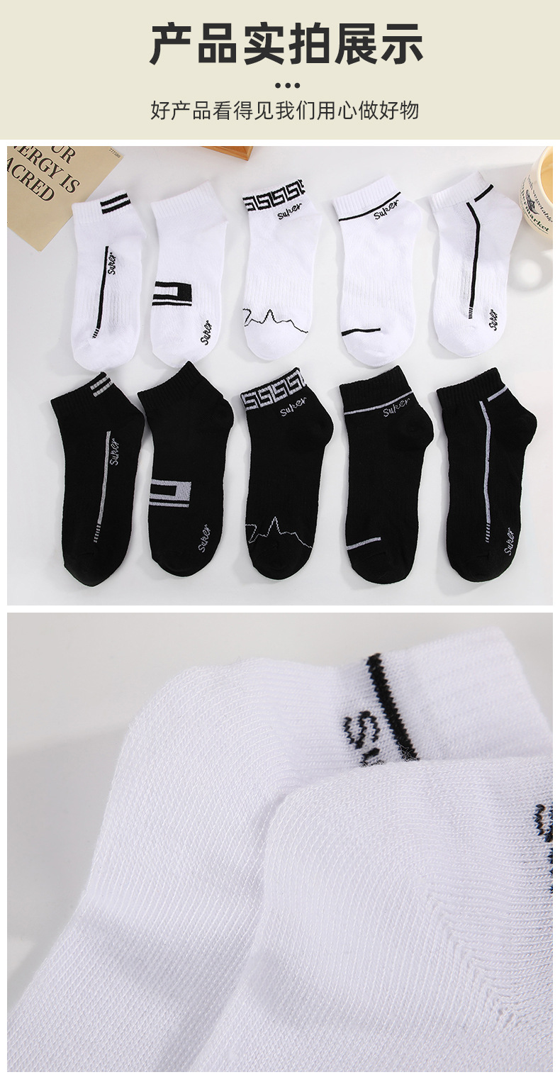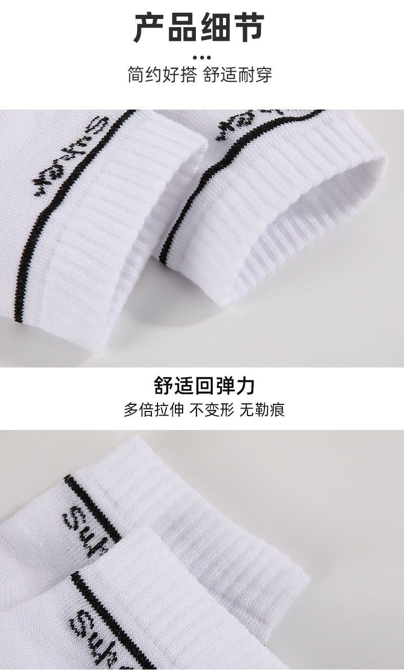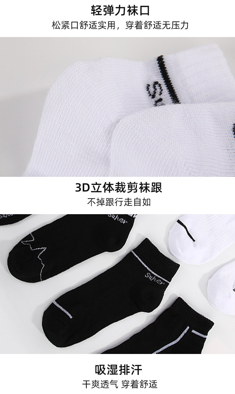 夏天袜子情侣袜黑白简约透气吸汗百搭运动袜男女休闲袜可定 制