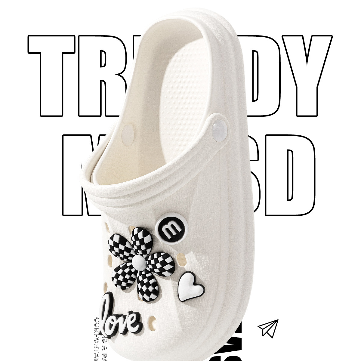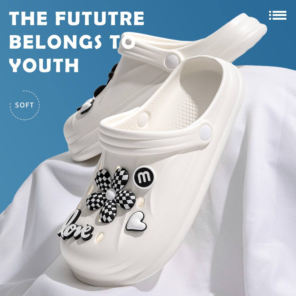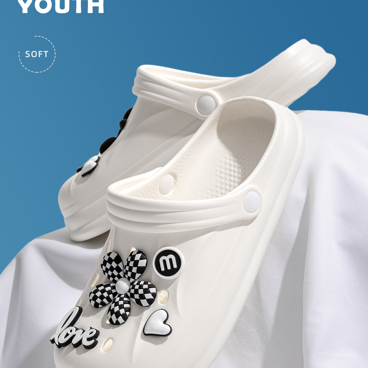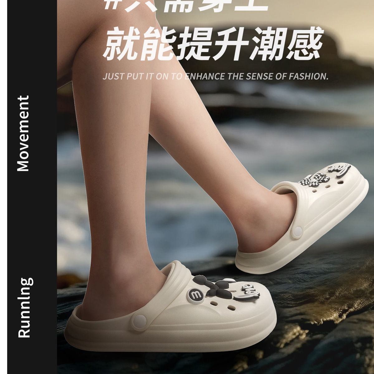 厚底洞洞鞋eva女沙滩浴室洗澡防滑办公室包头懒人半拖鞋批发外穿