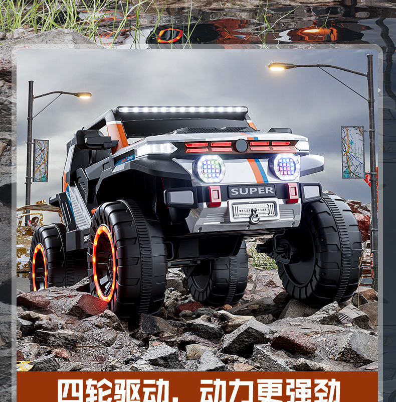 儿童电动车四轮汽车越野车宝宝带遥控玩具车可坐双人超大号亲子车