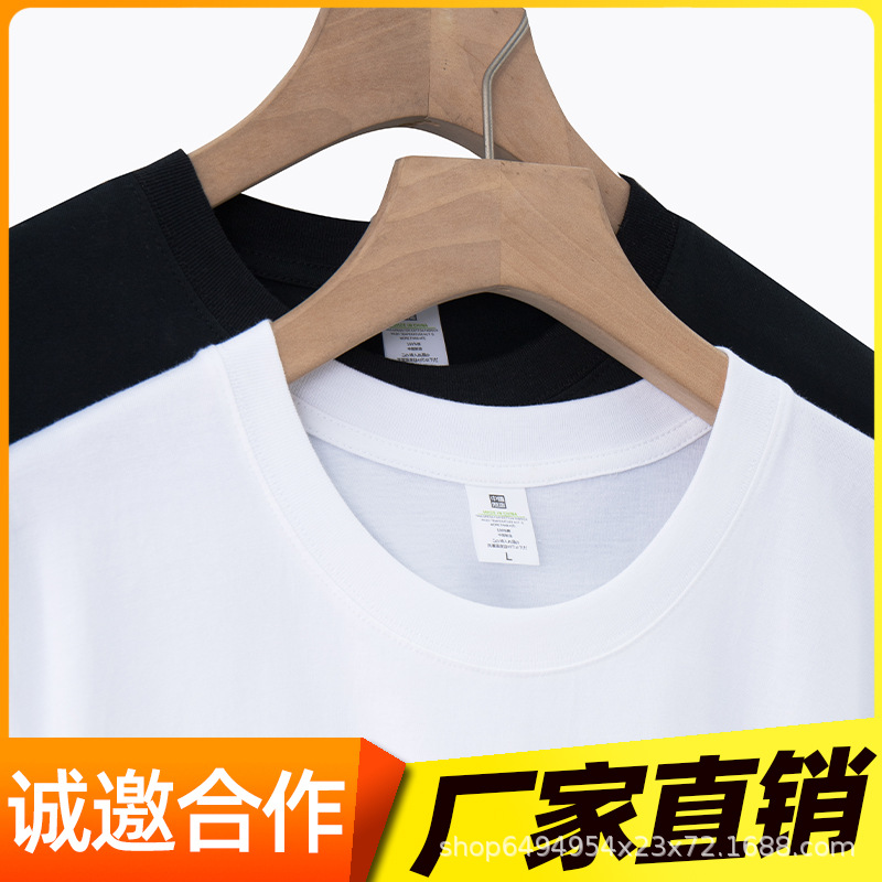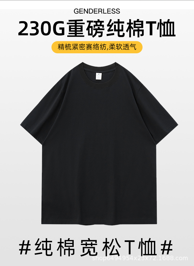 男士t恤批发230克男式短袖春夏季纯白色宽松半袖上衣服精梳棉
