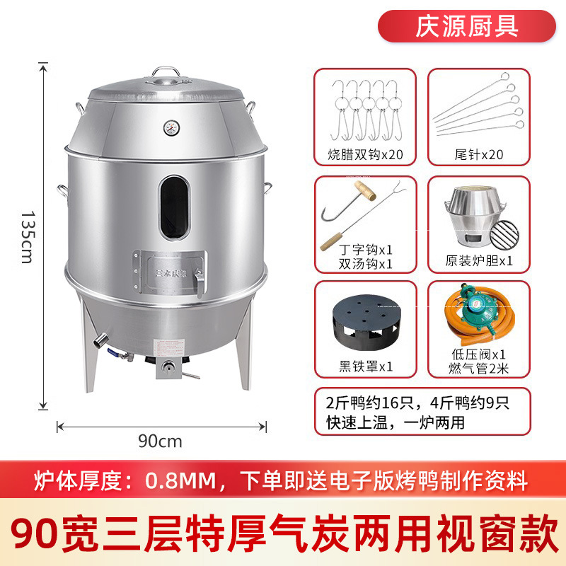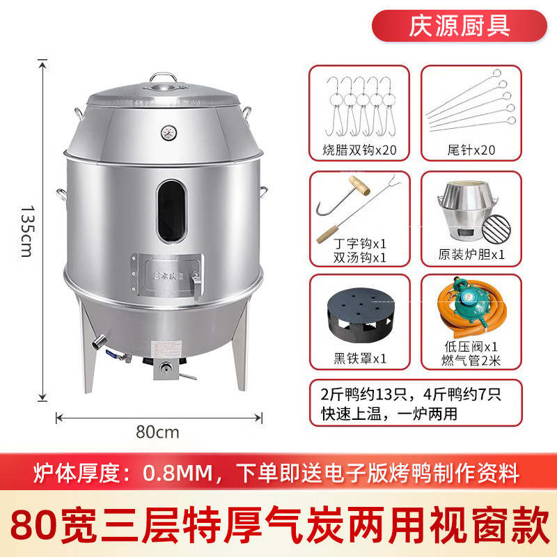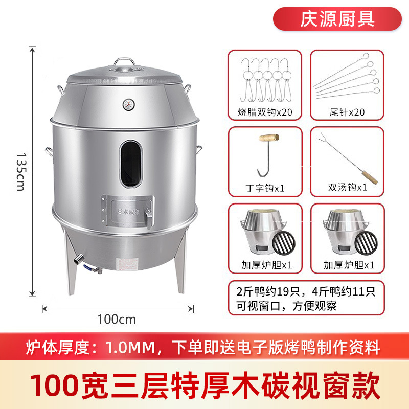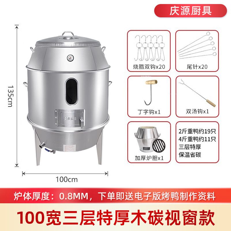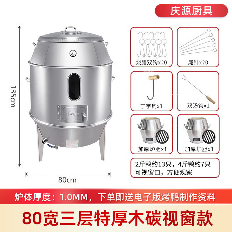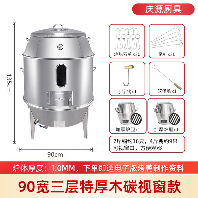 庆源厨具8090款双层烤鸭炉商用木炭烧腊吊炉不锈钢家用烤鸡炉厂家