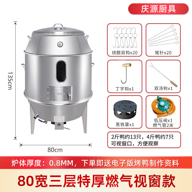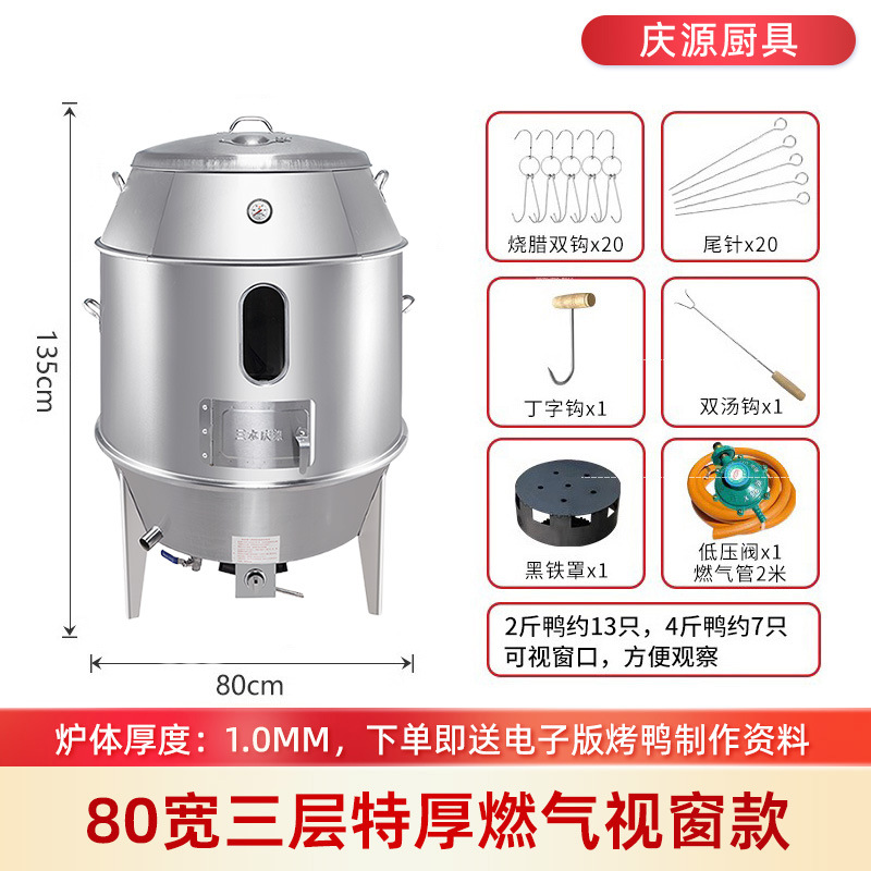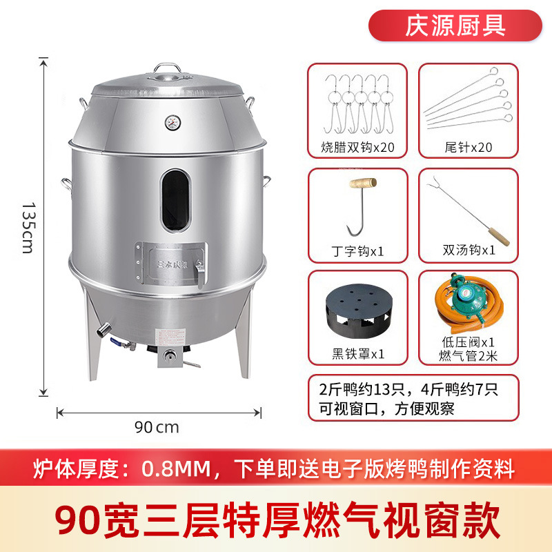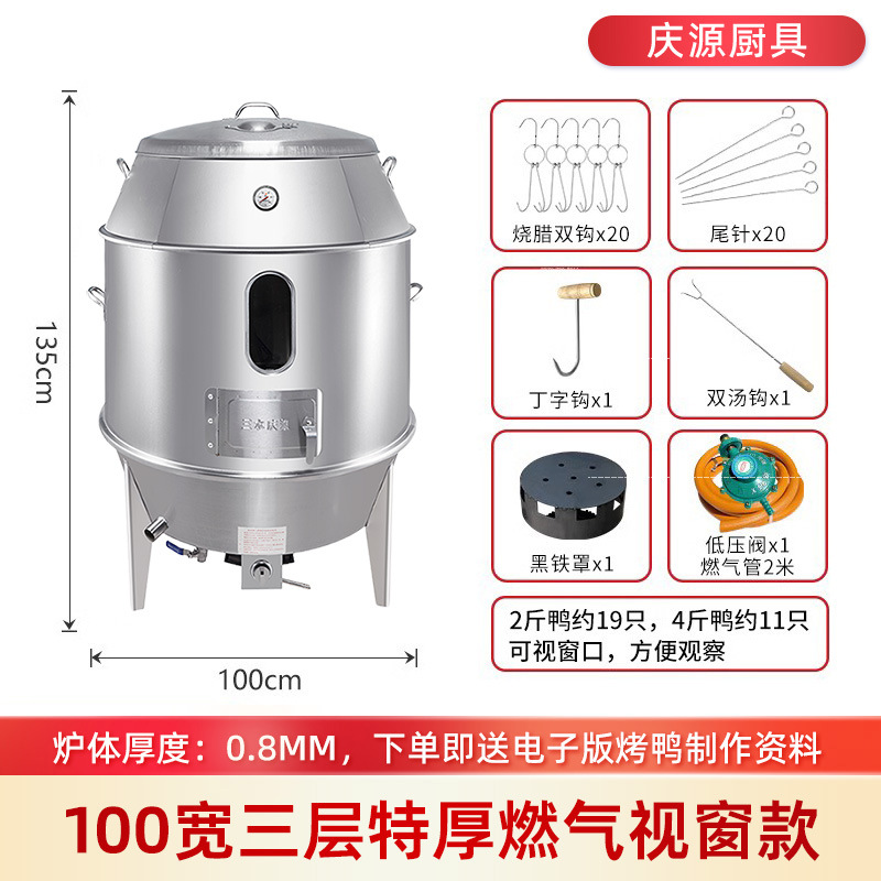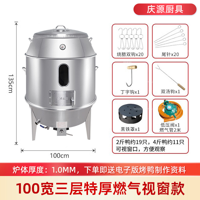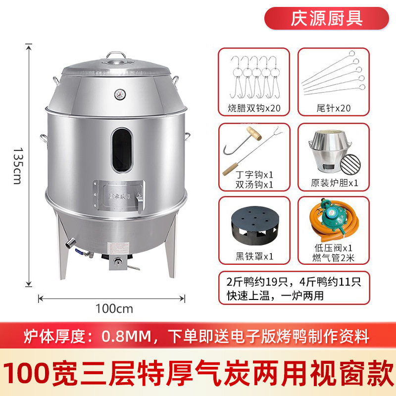 庆源厨具8090款双层烤鸭炉商用木炭烧腊吊炉不锈钢家用烤鸡炉厂家