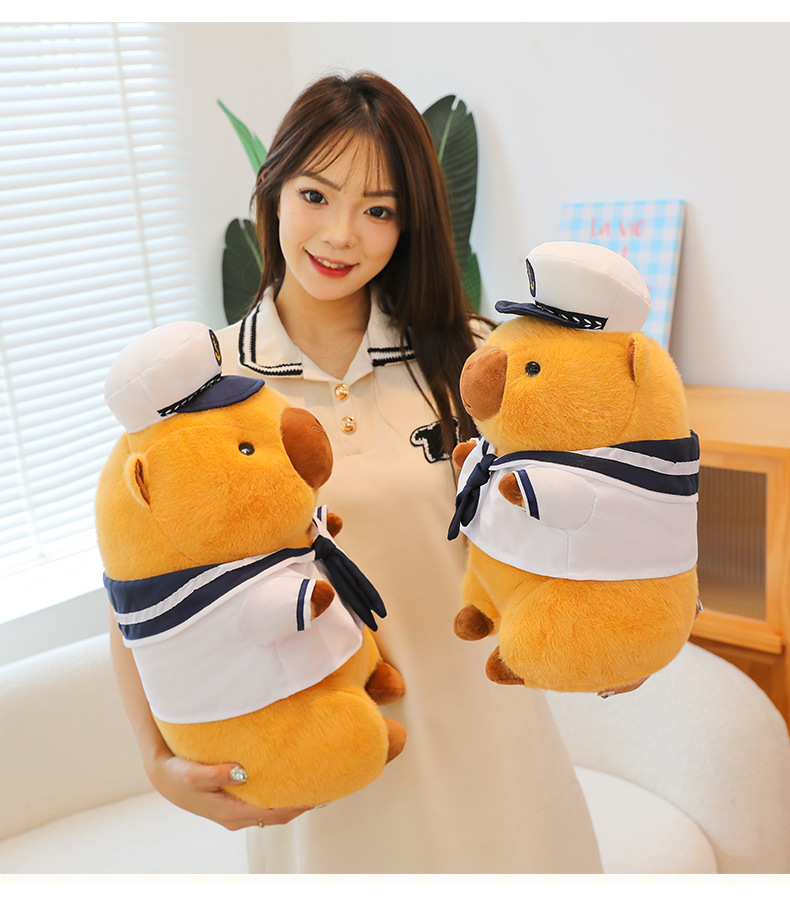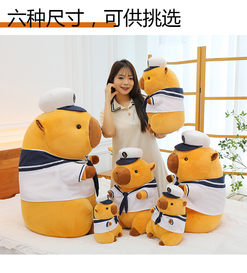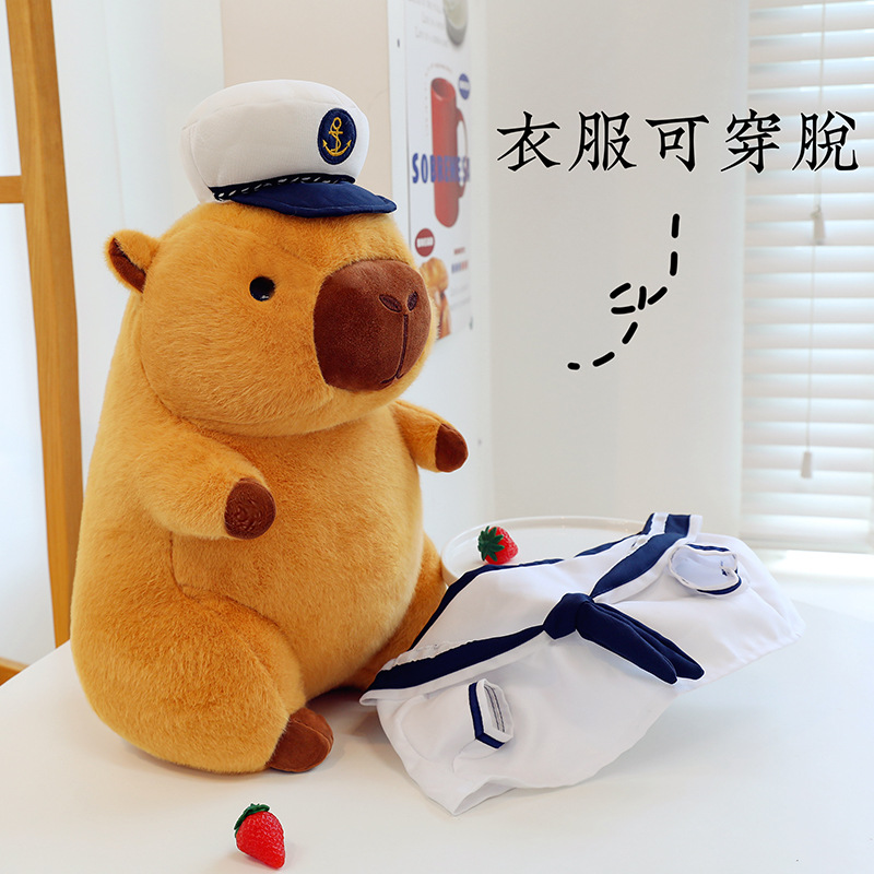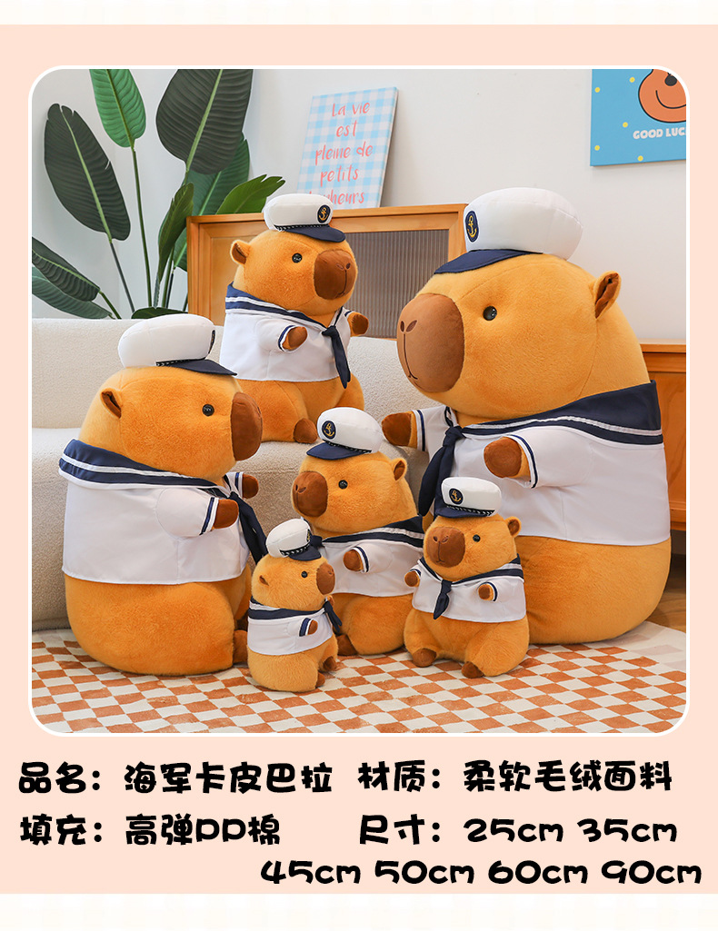 跨境卡皮巴拉公仔吐海军水豚玩偶丑萌卡皮吧拉毛绒玩具摆件礼物