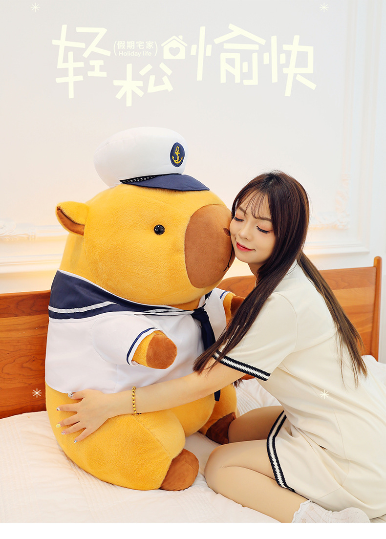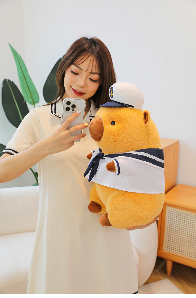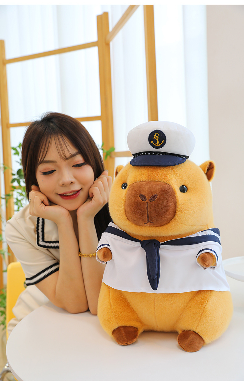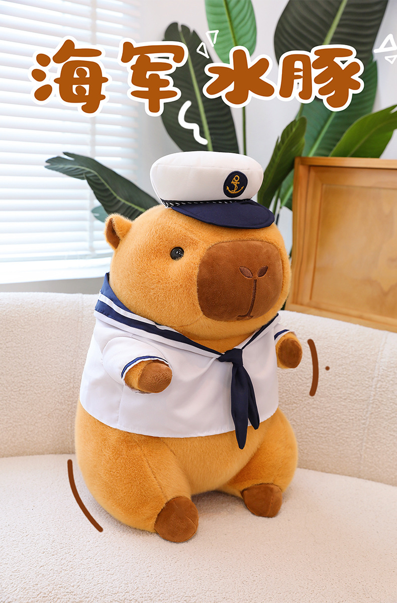 跨境卡皮巴拉公仔吐海军水豚玩偶丑萌卡皮吧拉毛绒玩具摆件礼物