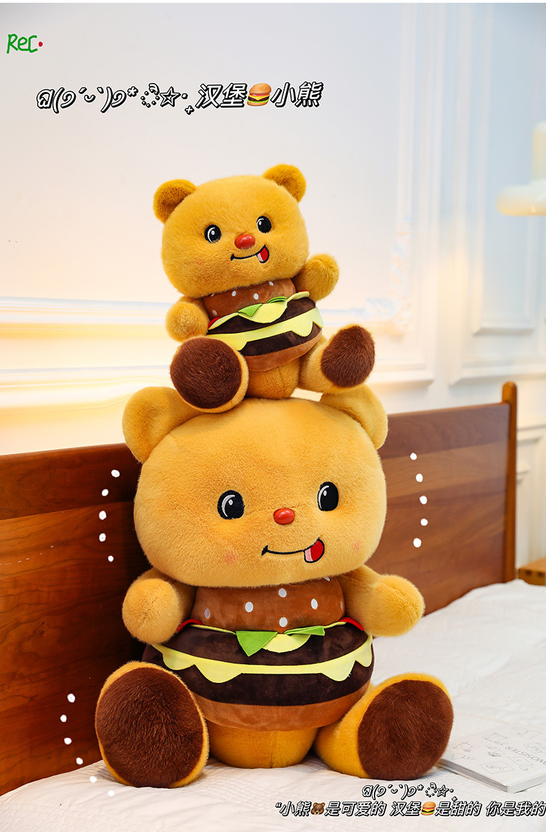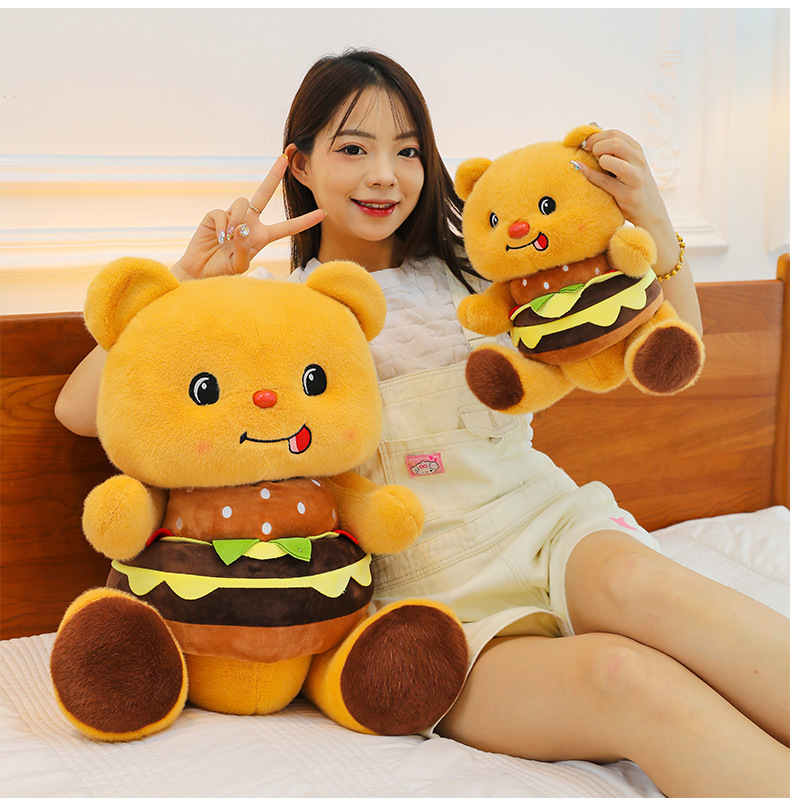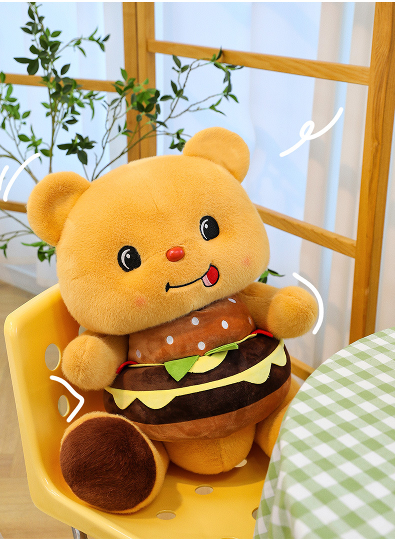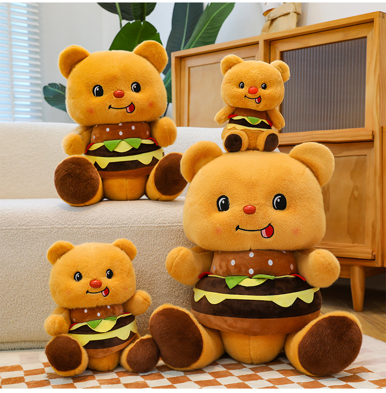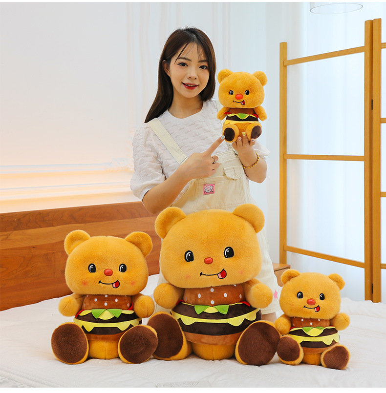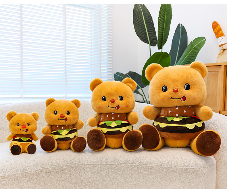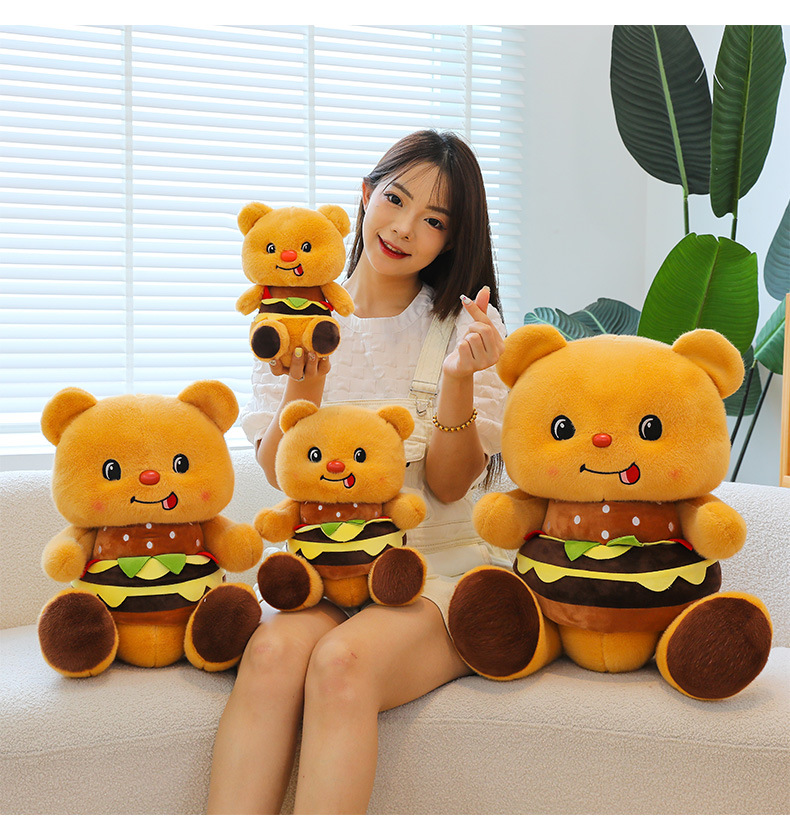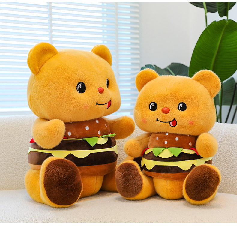 创意可爱汉堡小熊毛绒公仔儿童小熊布娃娃玩偶女生礼物剪刀机兑换