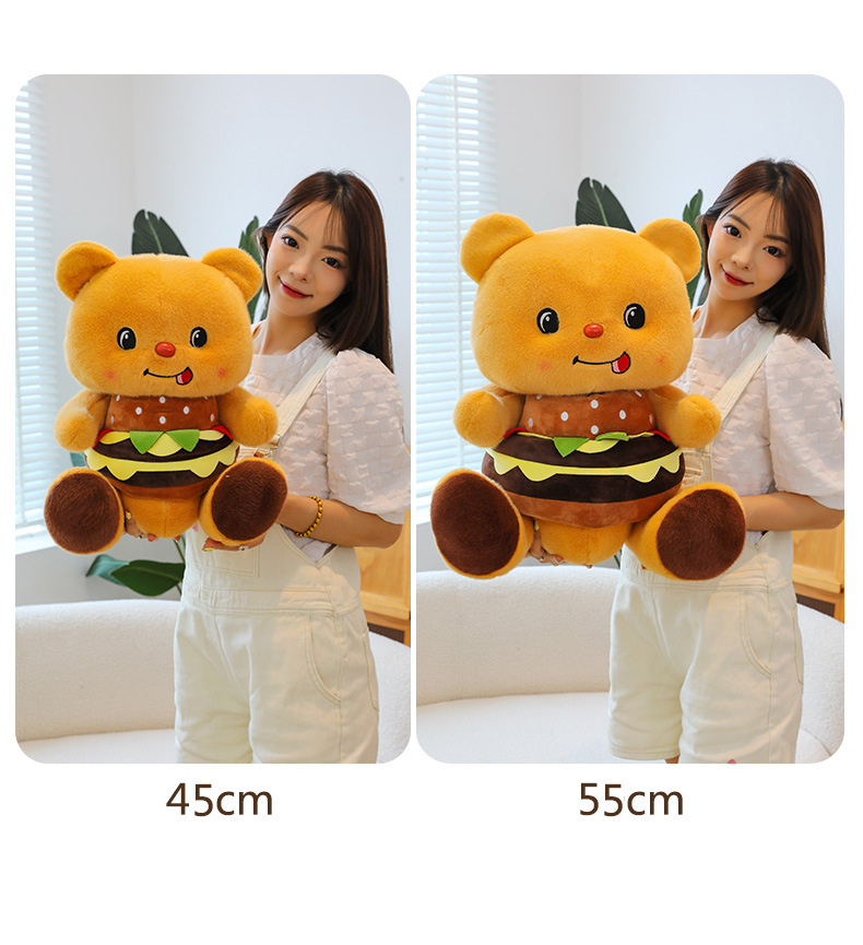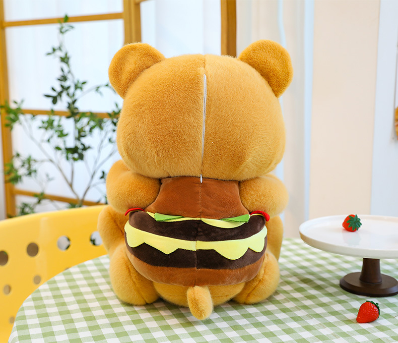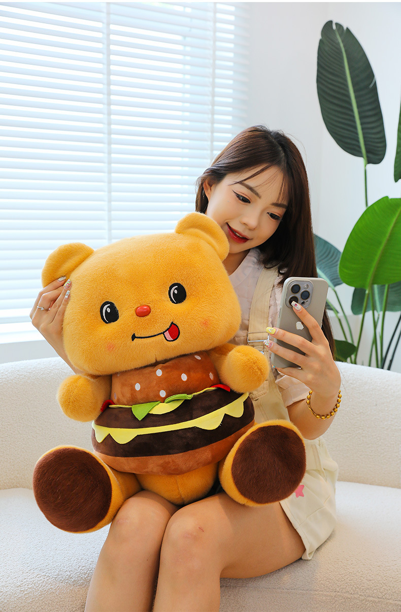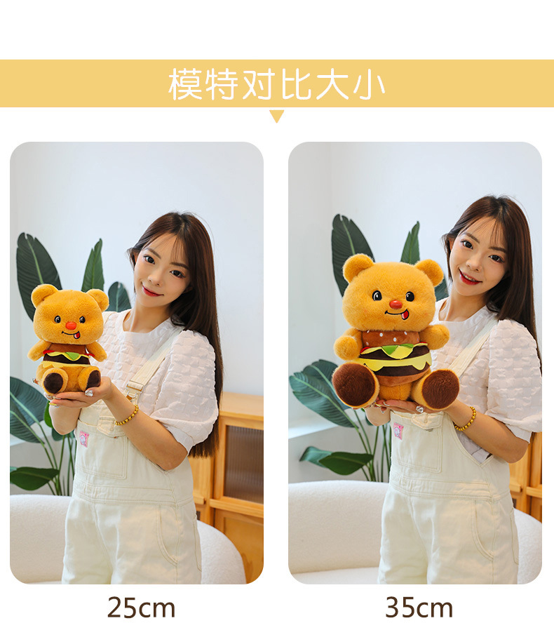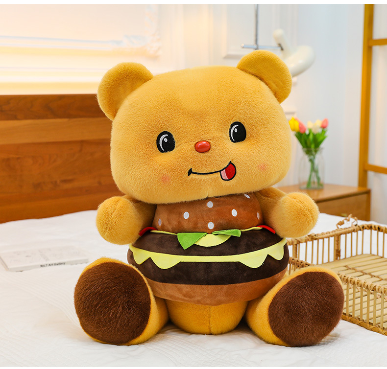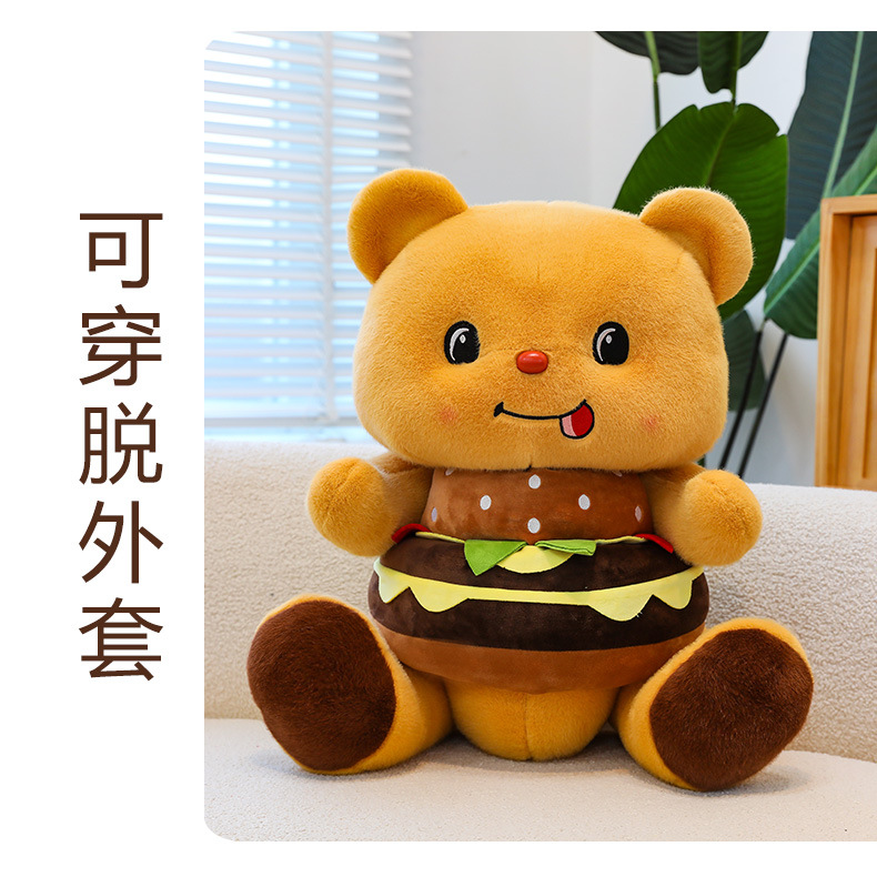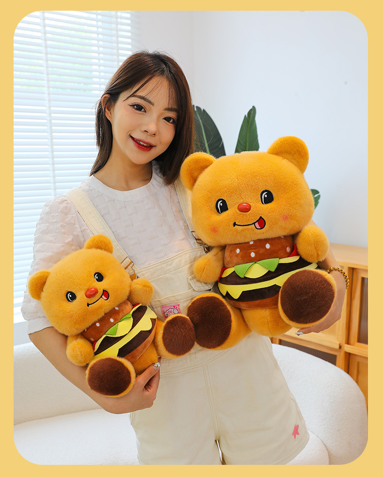 创意可爱汉堡小熊毛绒公仔儿童小熊布娃娃玩偶女生礼物剪刀机兑换