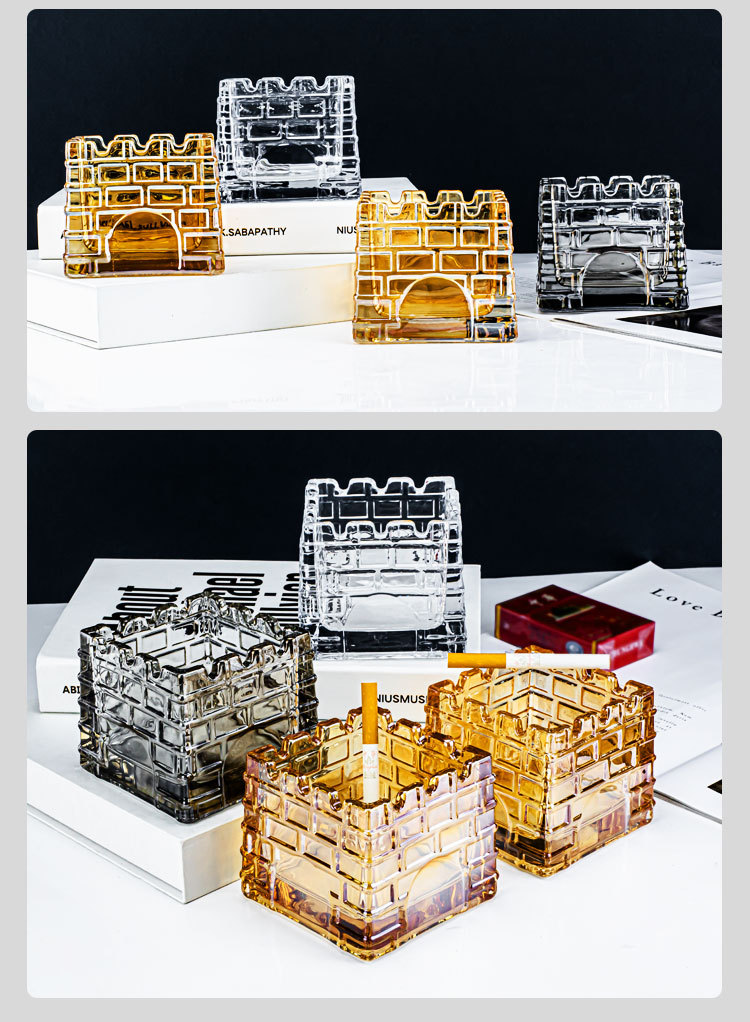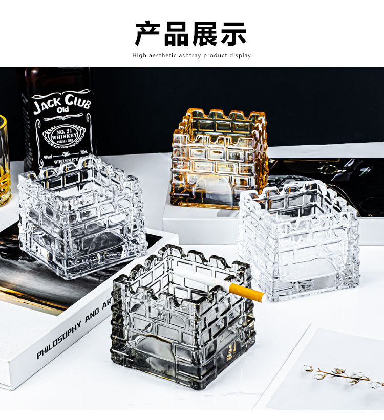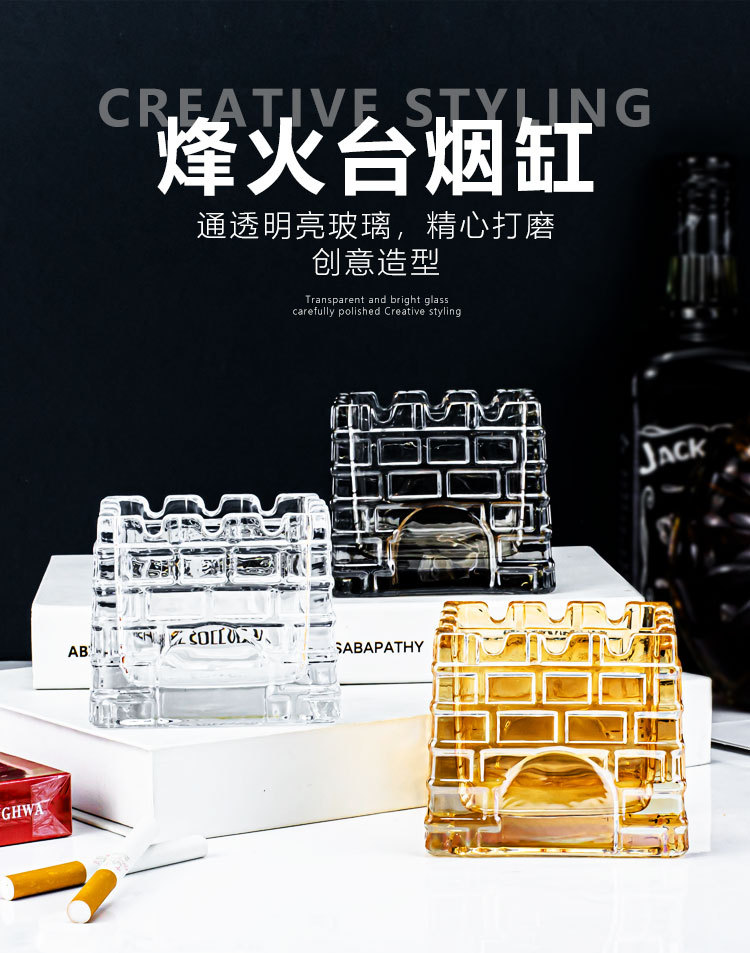 创意烽火台玻璃烟灰缸批发防飞灰家用大号酒吧办公室烟缸