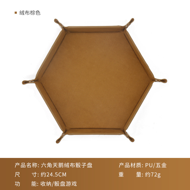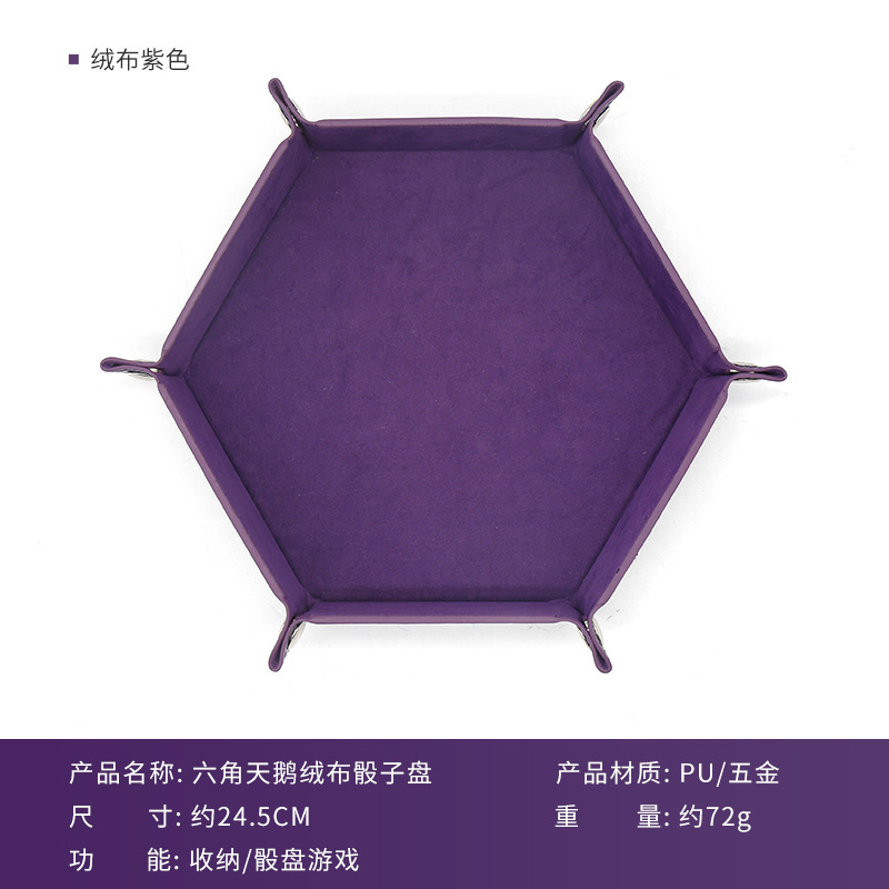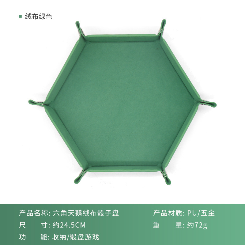 跨境热销六角天鹅绒布骰子盘可折叠收纳盒pu托盘桌面收纳盒干果盘
