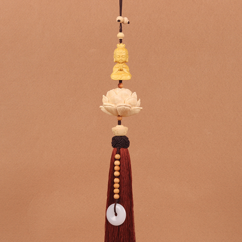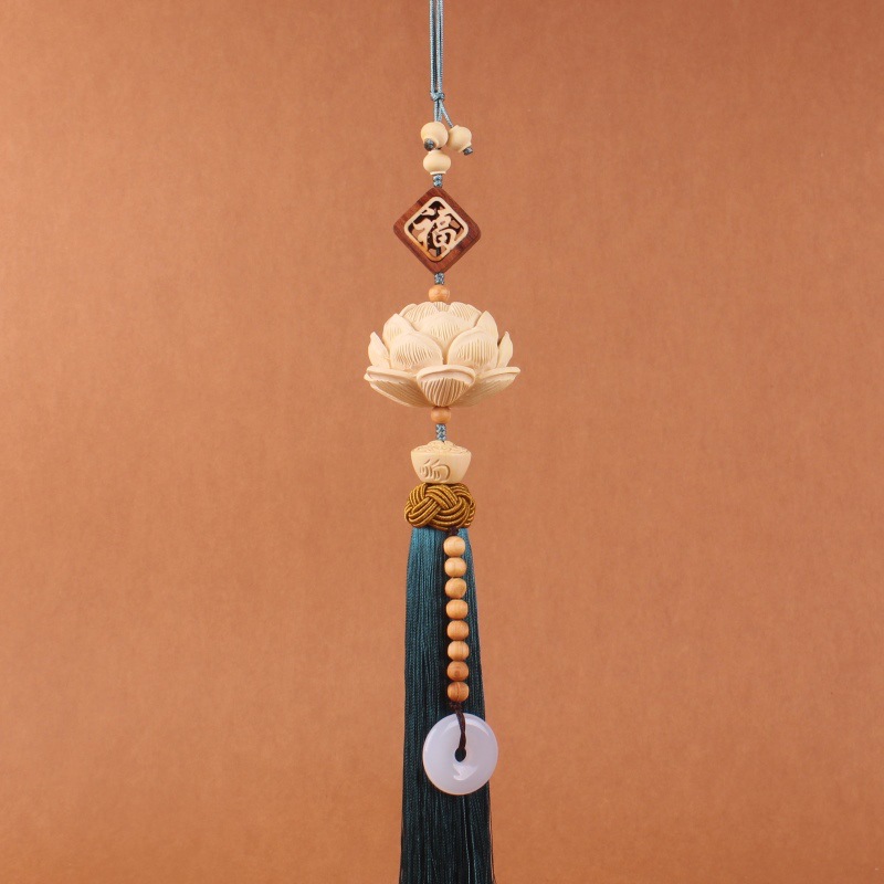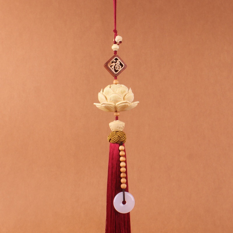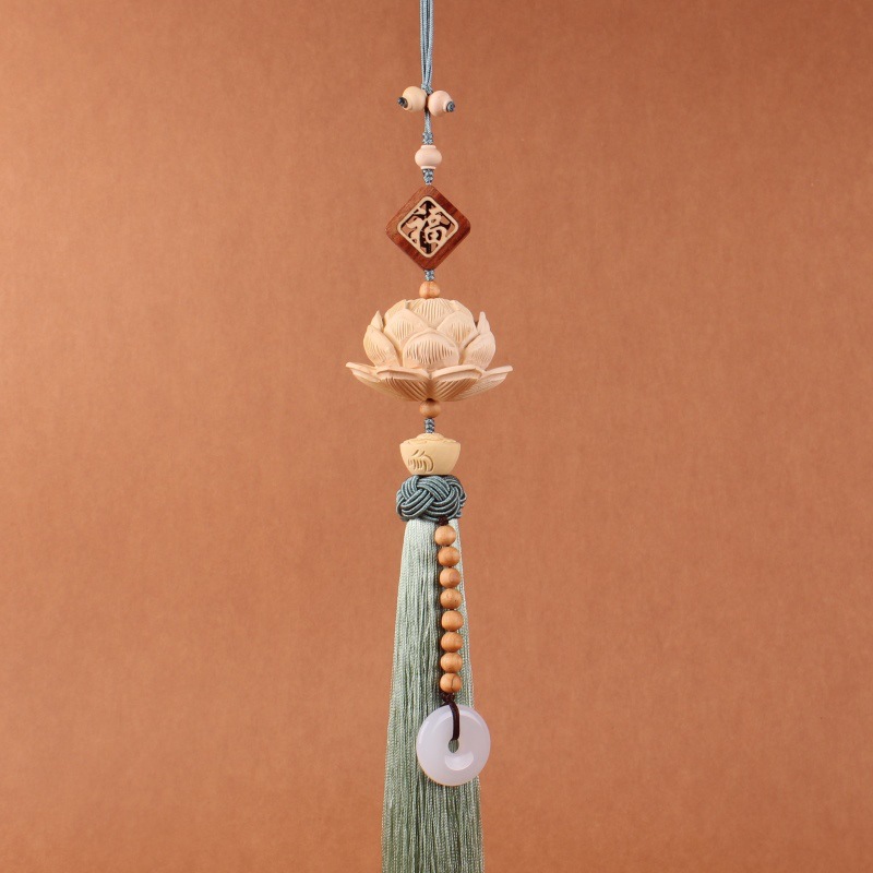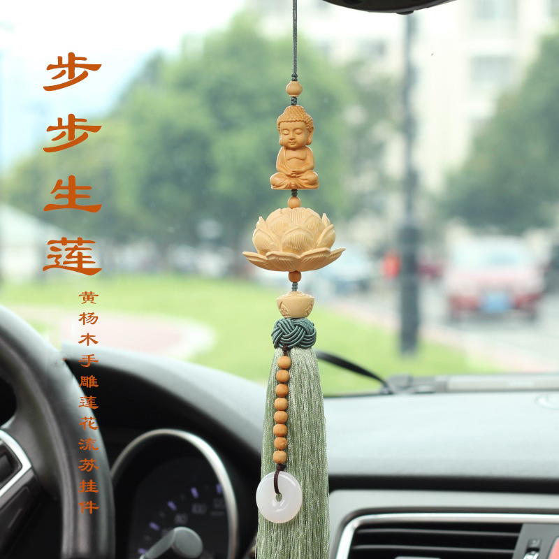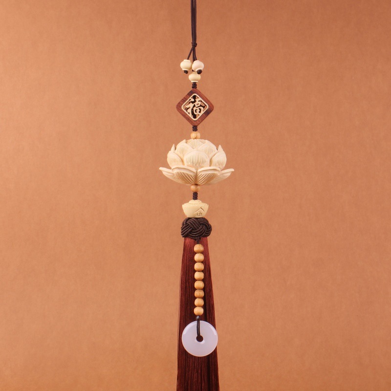 汽车挂件黄杨木莲花桃木挂件祈福平安高档车载吊坠旅游景区纪念品