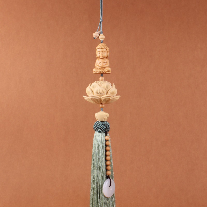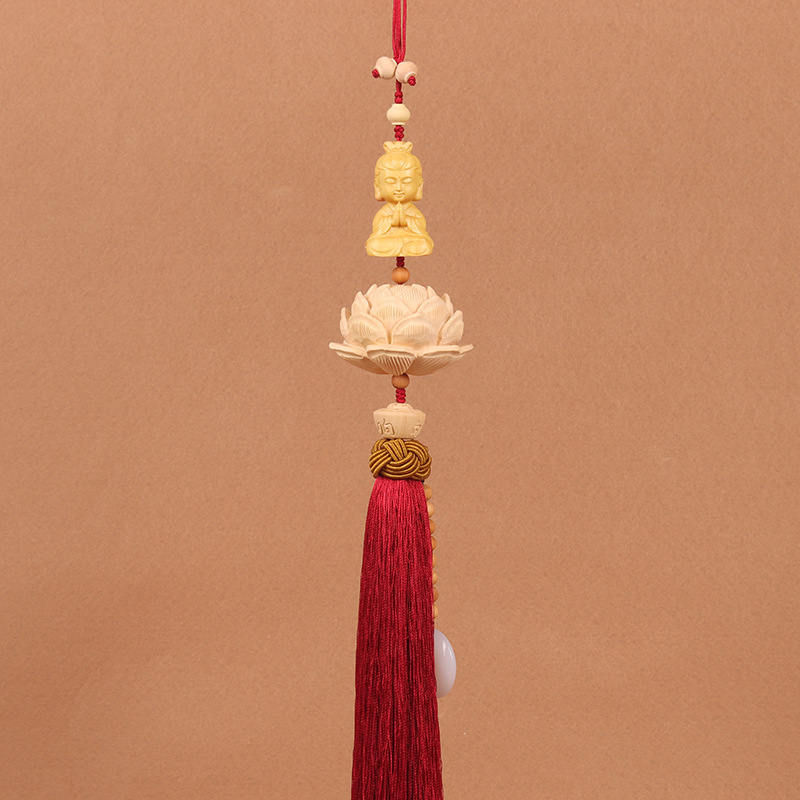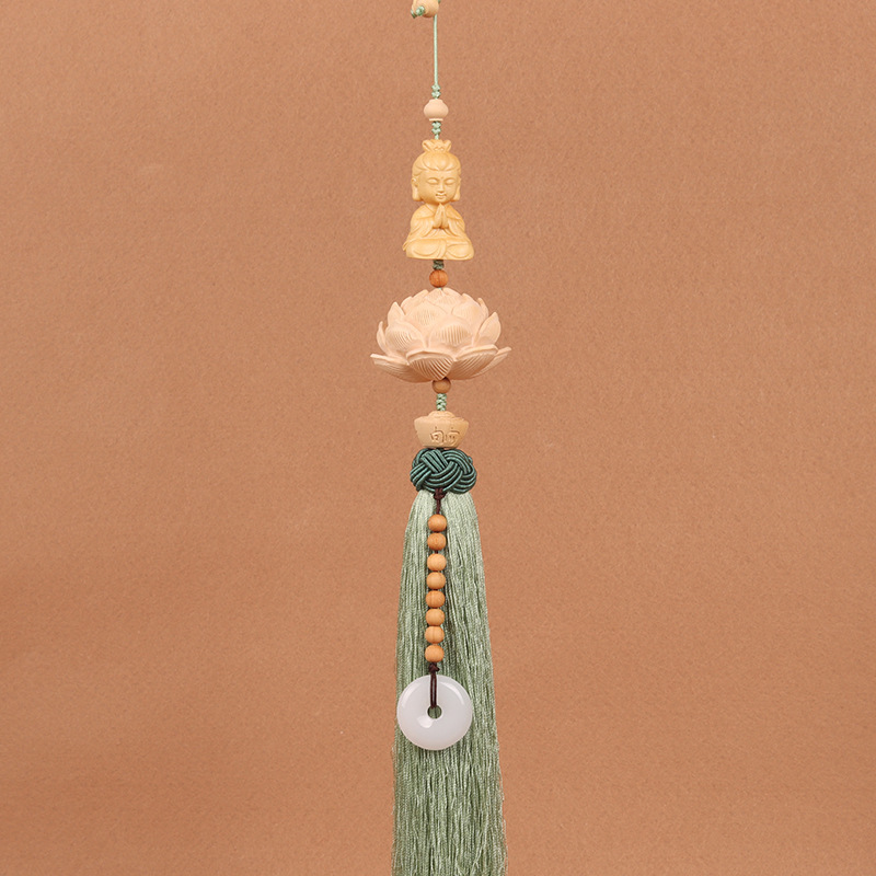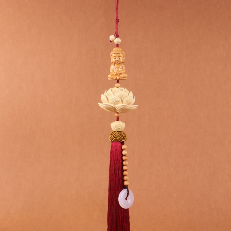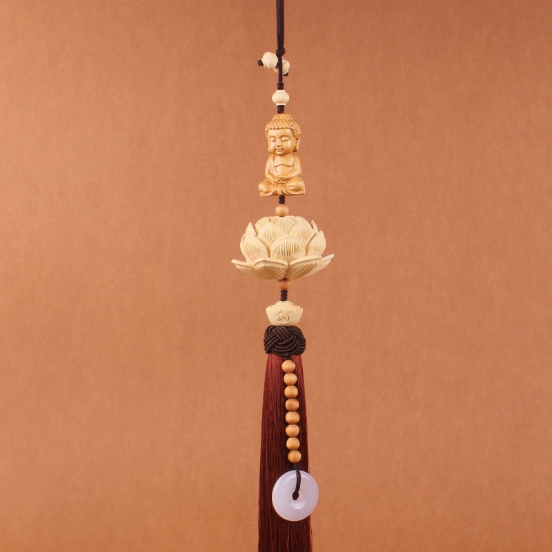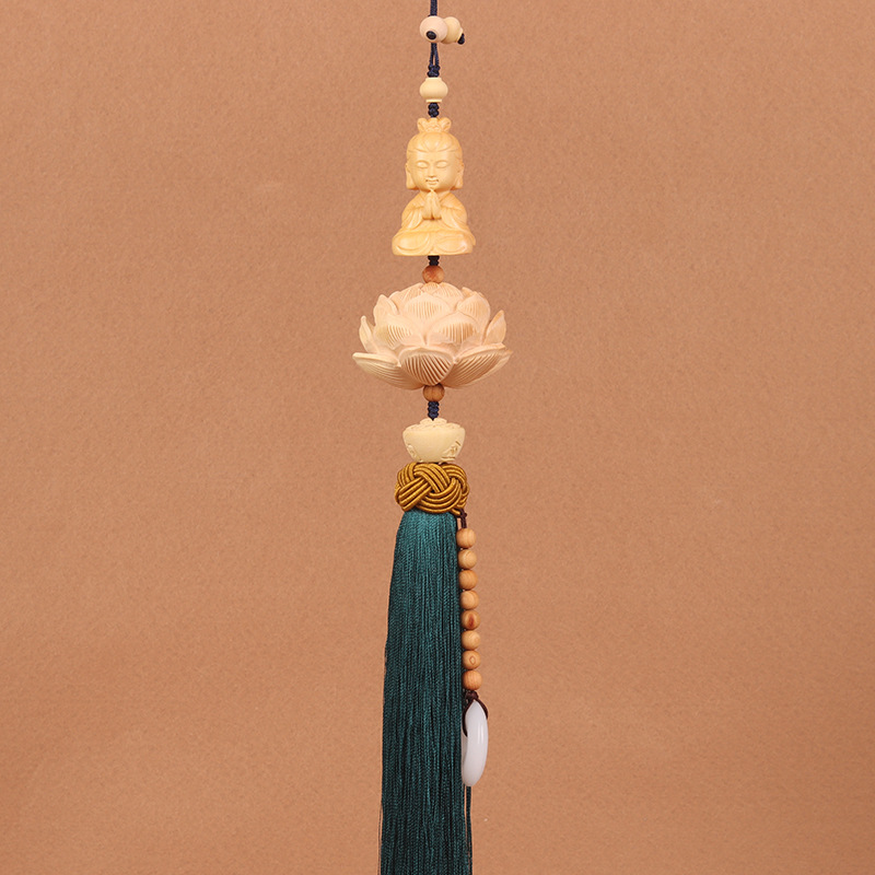 汽车挂件黄杨木莲花桃木挂件祈福平安高档车载吊坠旅游景区纪念品