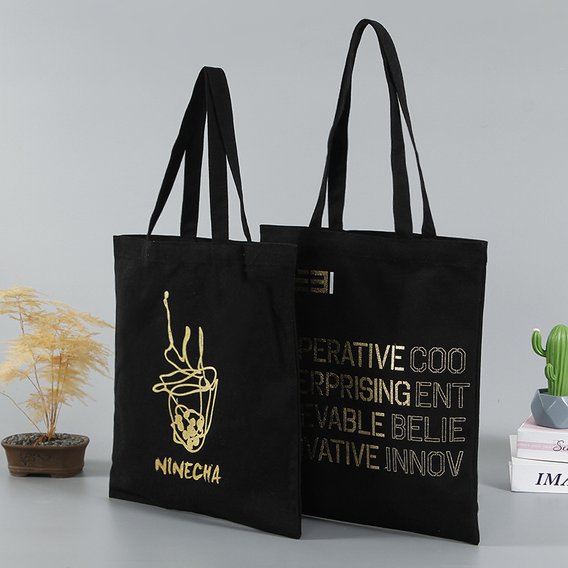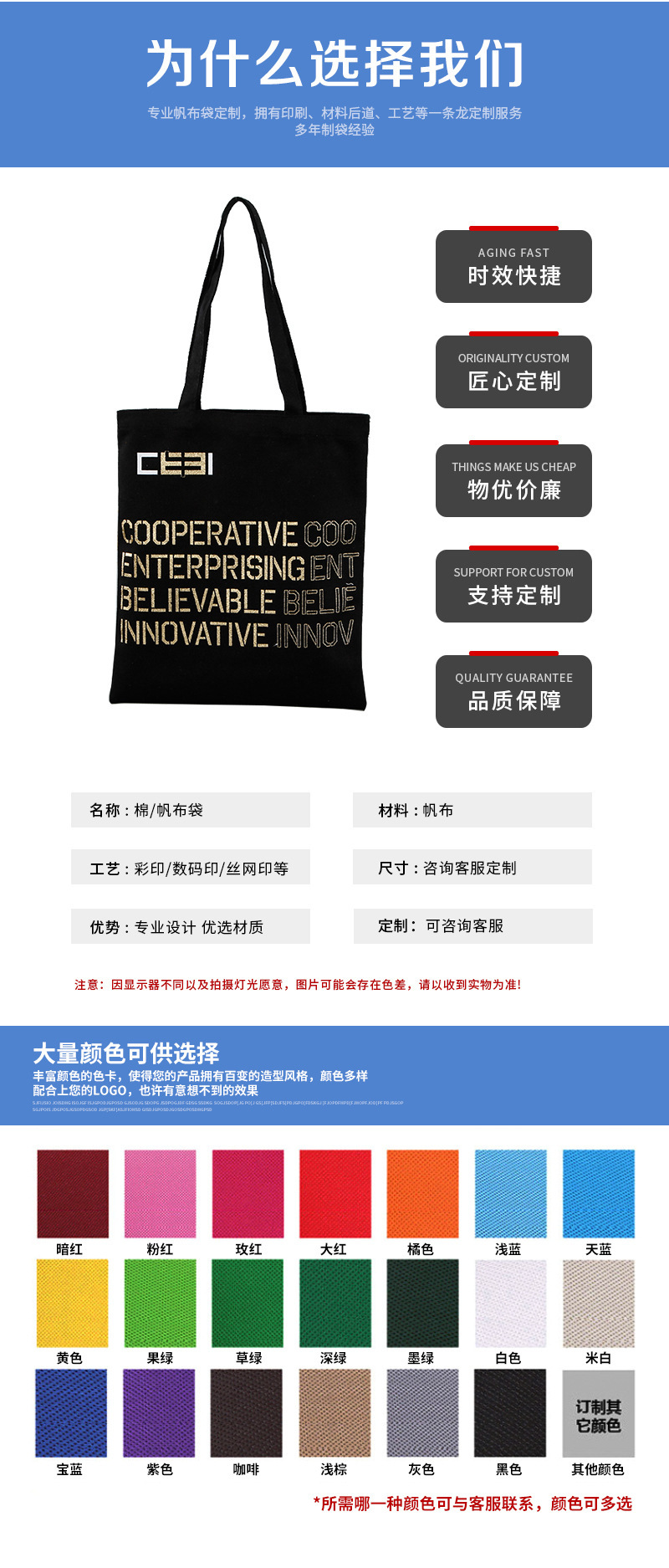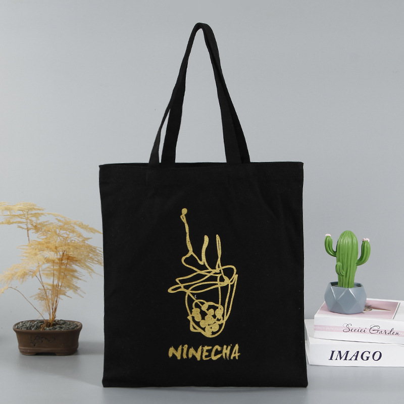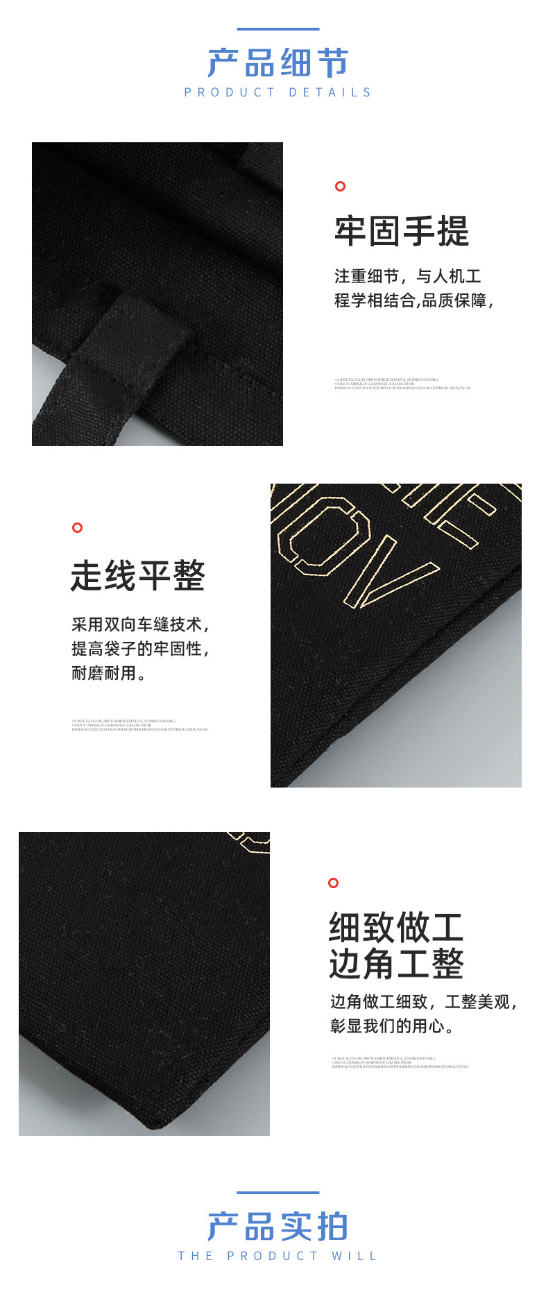 黑色手提帆布袋广告宣传棉布袋创意机绣帆布手提袋logo