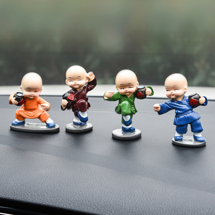 整套4个价 汽车摆件用品少林功夫小子酒坛醉拳小和尚 树脂工艺礼