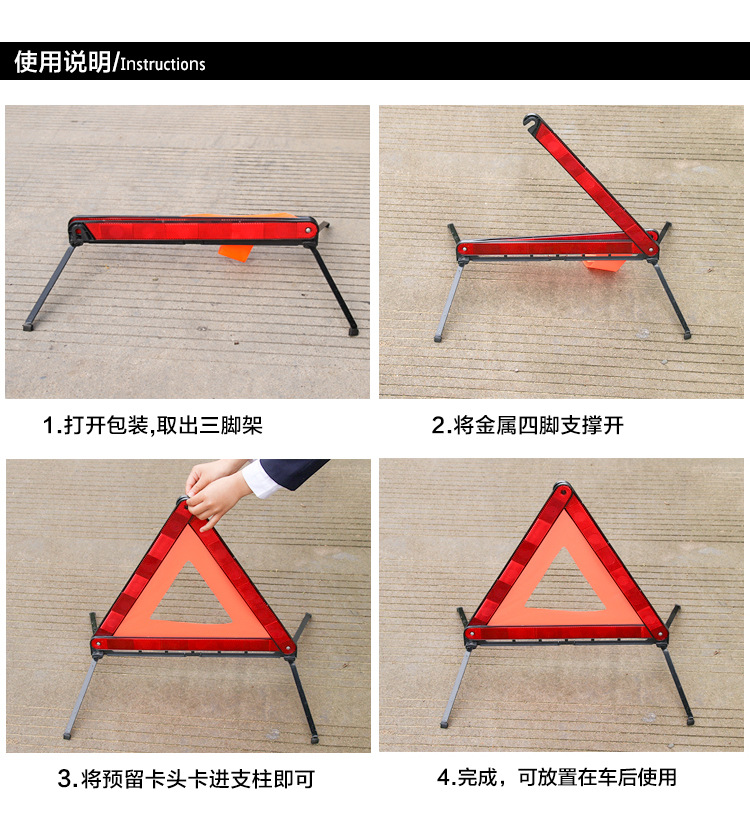 汽车用紧急停车事故三角架警示牌 车载多功能年检审三脚架折叠牌