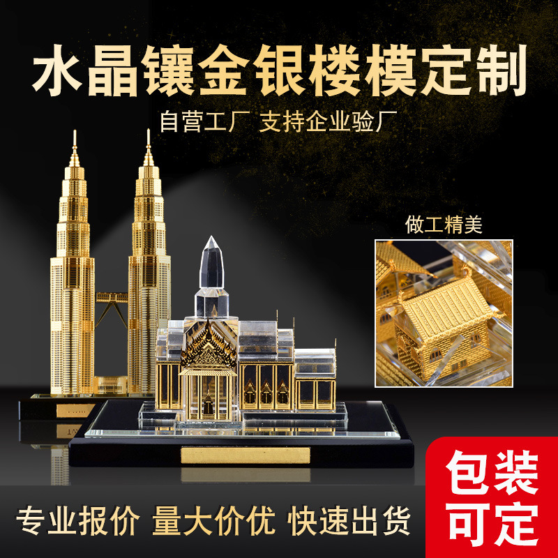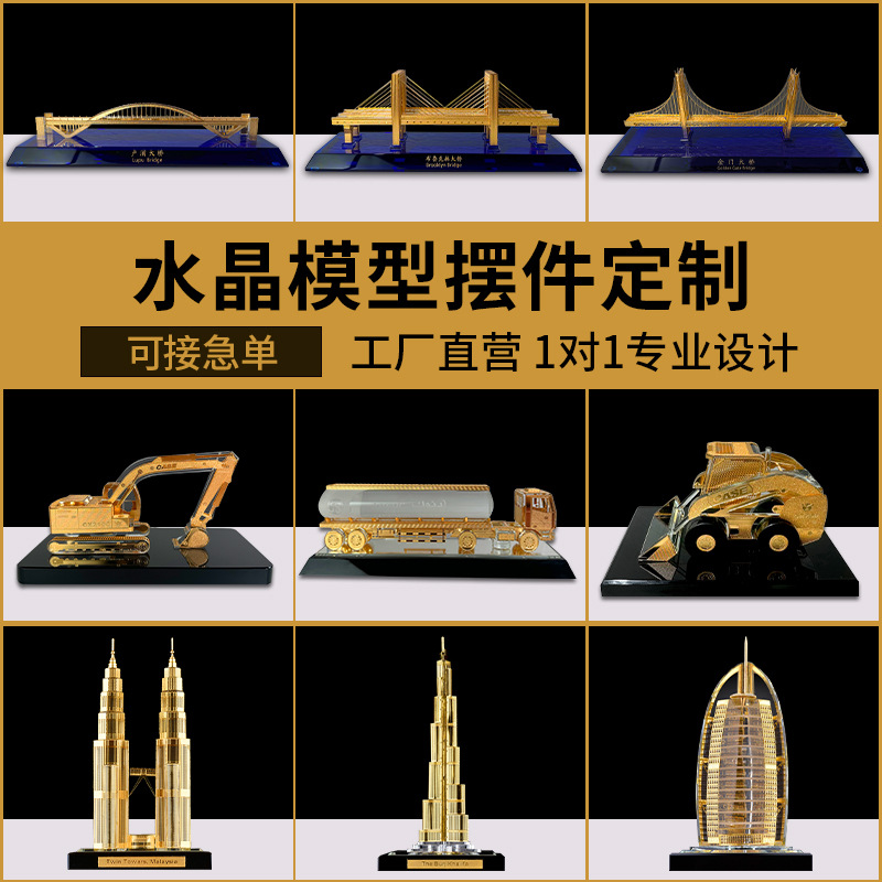 世界地标建筑水晶模型定制高楼竣工纪念水晶内雕车模桥梁工艺品