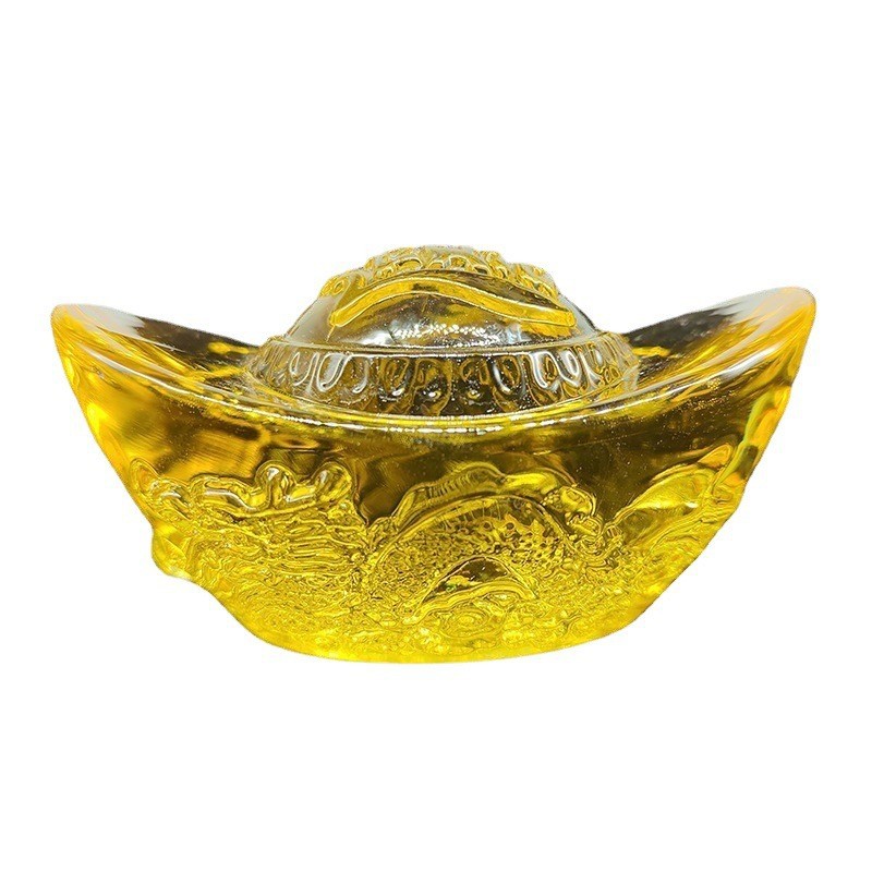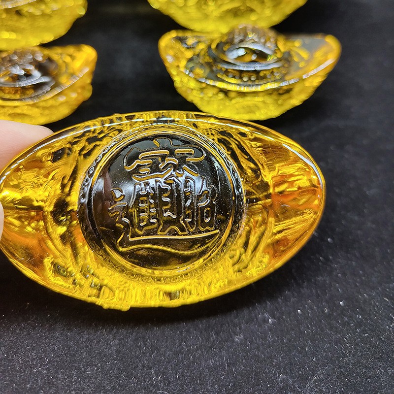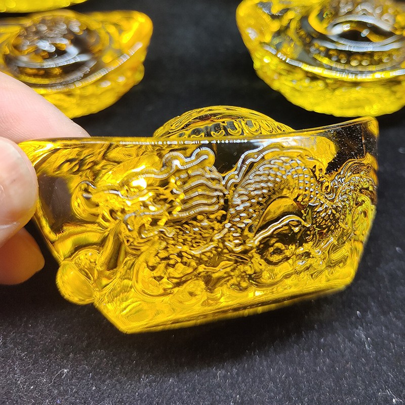 琉璃小元宝小龙纹元宝琉璃聚宝盆家居装饰乔迁招米礼品黄水晶元宝