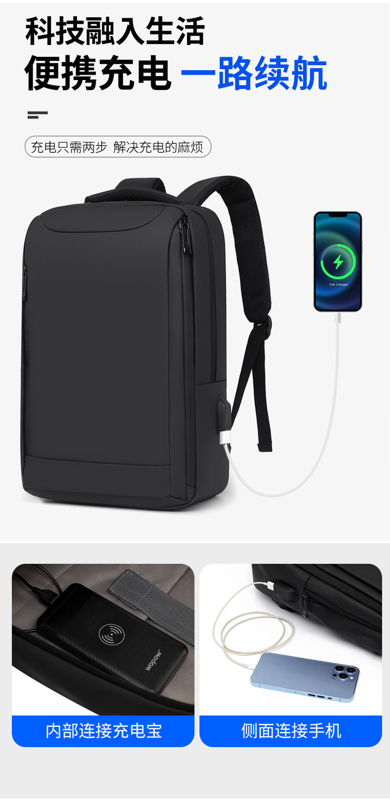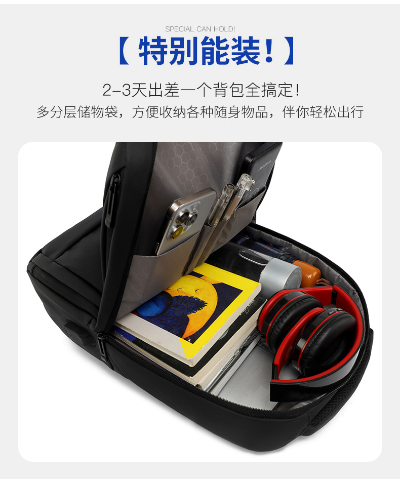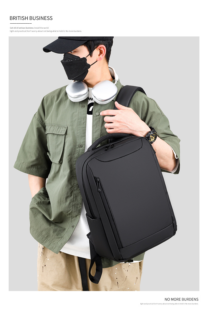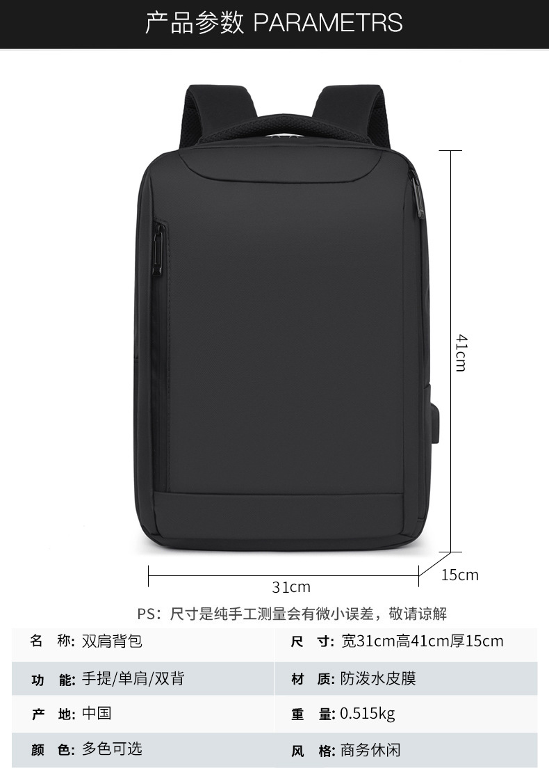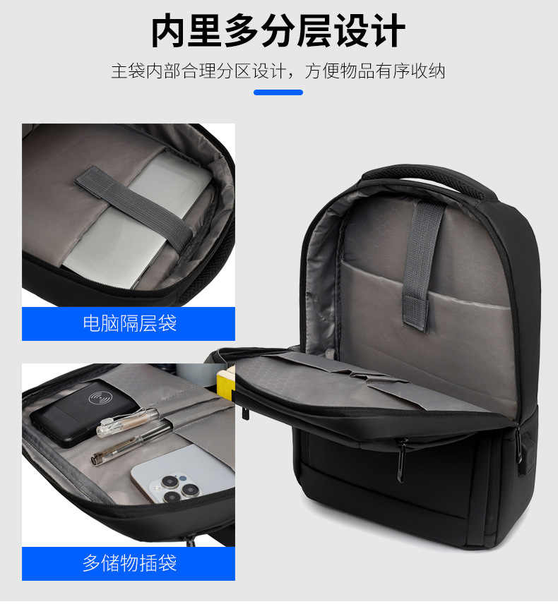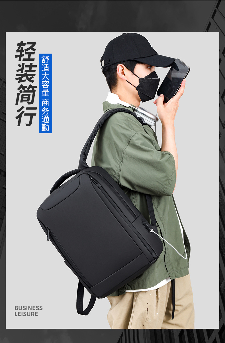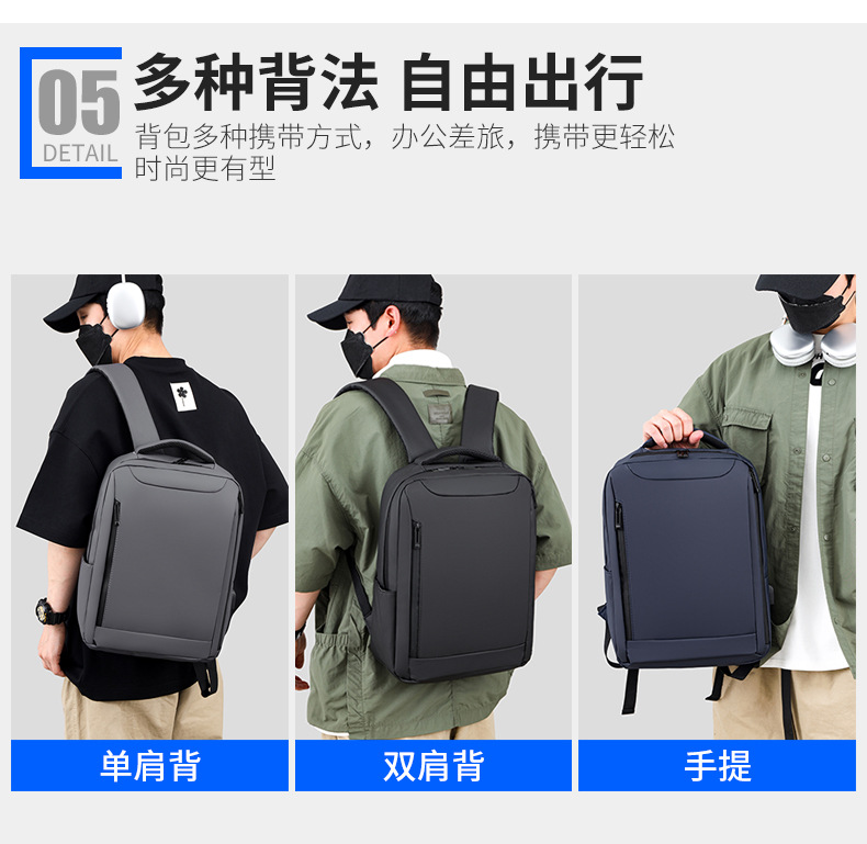 新款商务简约双肩包男短途出差户外出行背包通勤多层大容量电脑包