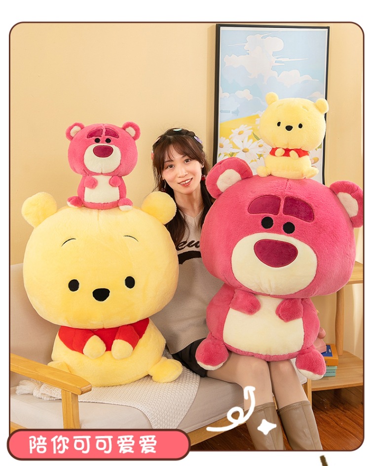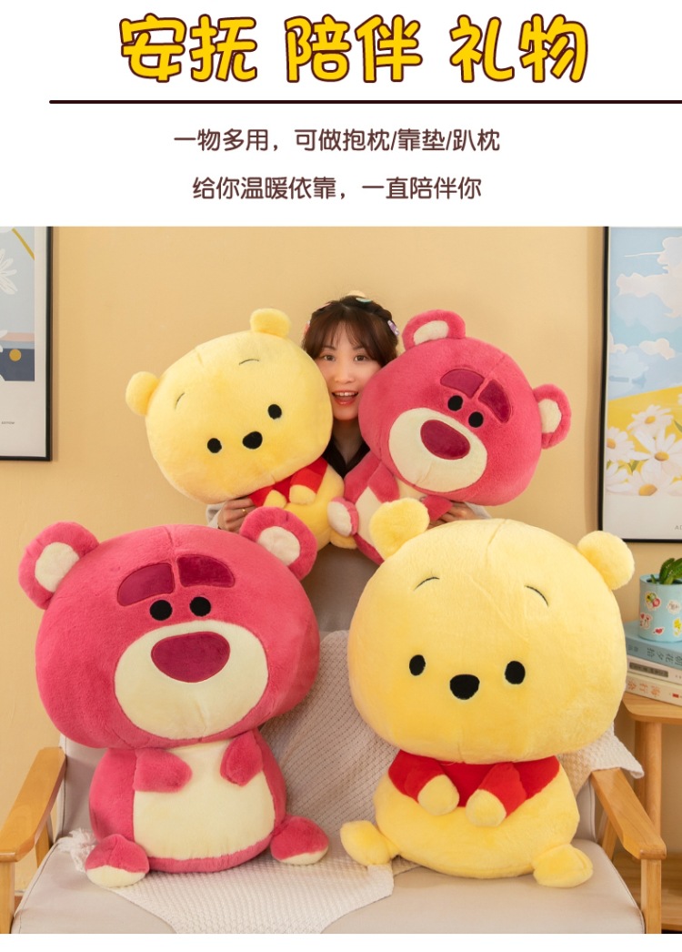新款可爱维尼熊公仔毛绒玩具卡通草莓熊娃娃玩偶抱枕抓机娃娃批发