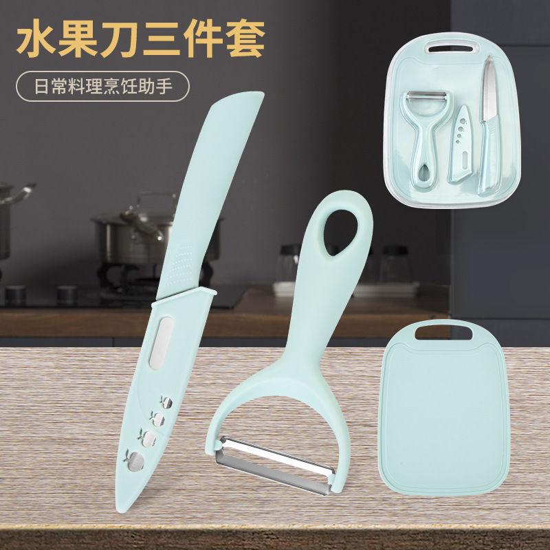 不锈钢三件套水果刀套装菜板水果刀瓜刨多色可选厨房迷你小刀礼品