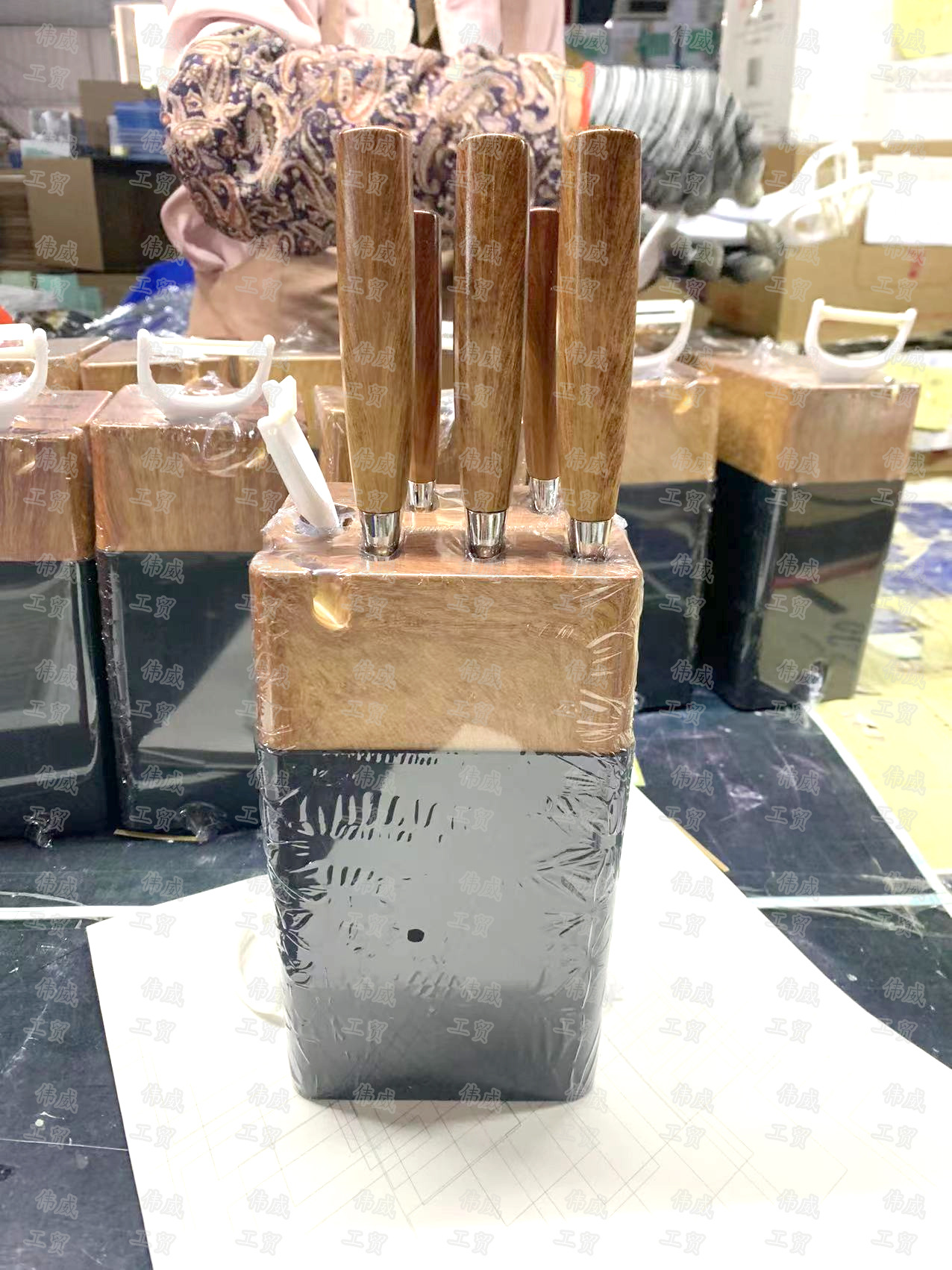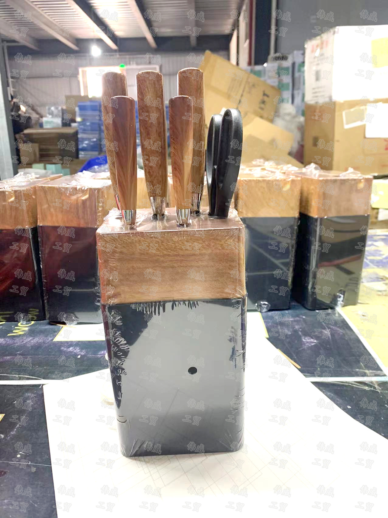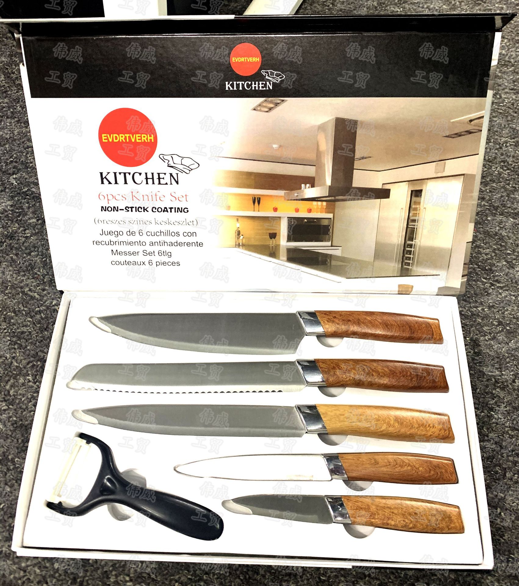 现货外贸不锈钢木纹柄厨房六件套装刀具套装厨房菜刀水果刀组合装