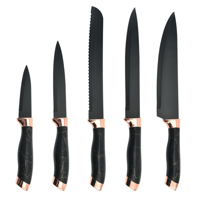 阳江厨房工具不锈钢喷漆大理石纹双电镀头玫瑰金柄双面吸加工定制