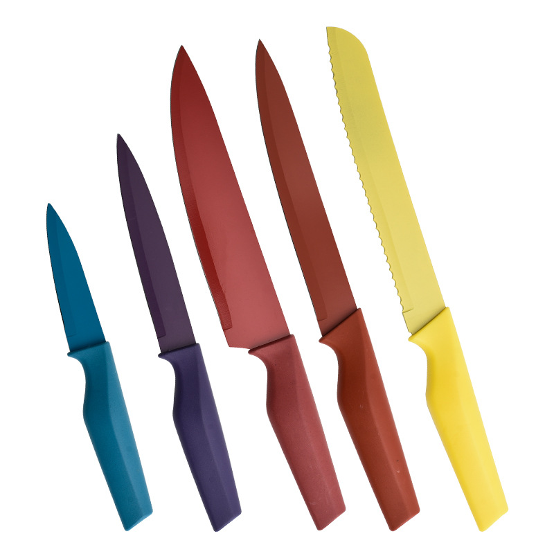 阳江菜刀不锈钢喷漆刀具彩色菱角柄单刀双面吸包装 批发 加工定制