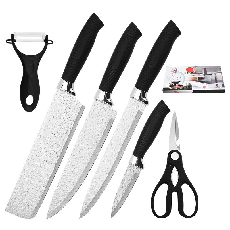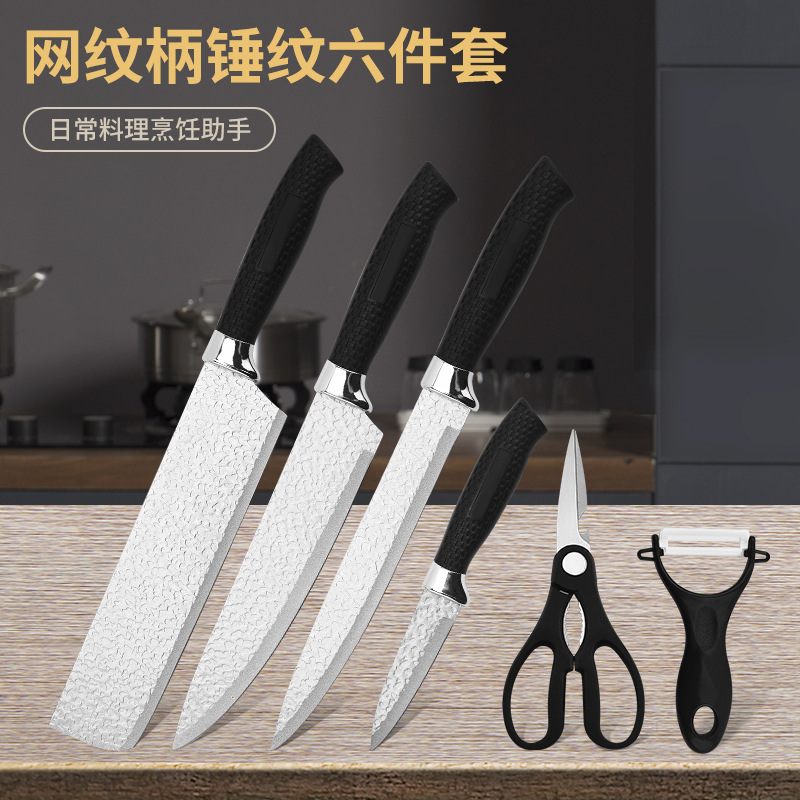 阳江菜刀网纹手柄冰点锤纹六件套刀阳江厨房工具源头工厂加工定制