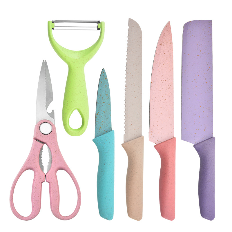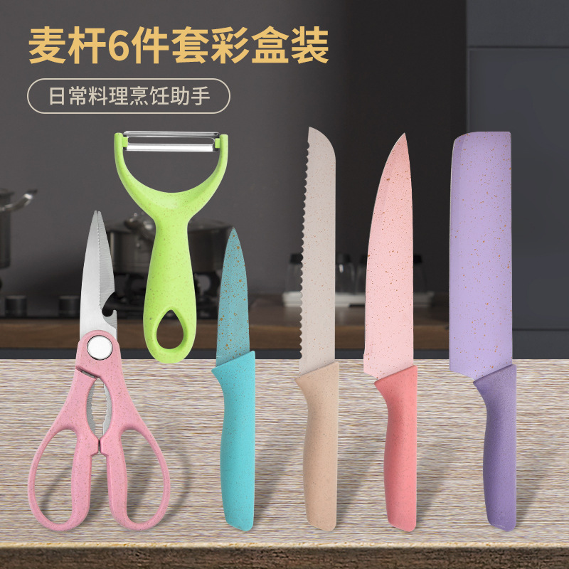 阳江菜刀麦杆六件套刀不锈钢喷漆刀具套装阳江厨房工具 加工定制