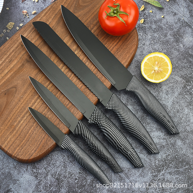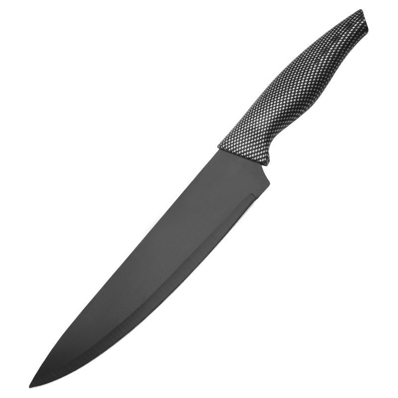 阳江菜刀 不锈钢喷漆刀具黑刃网格披覆柄时尚单刀双面吸 工厂批发