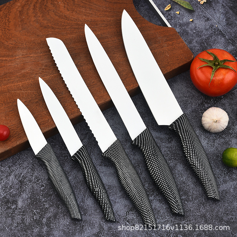 阳江菜刀不锈钢喷漆刀具黑色网格手柄商务礼品单刀双面吸包装批发