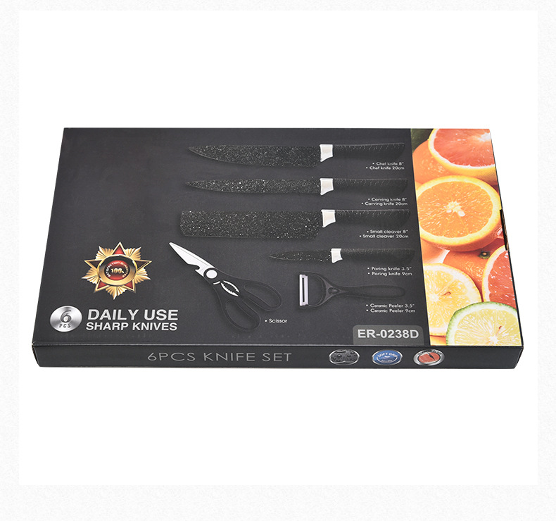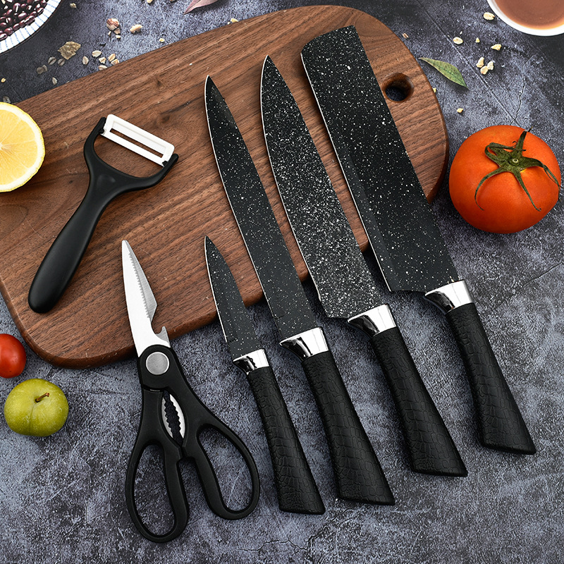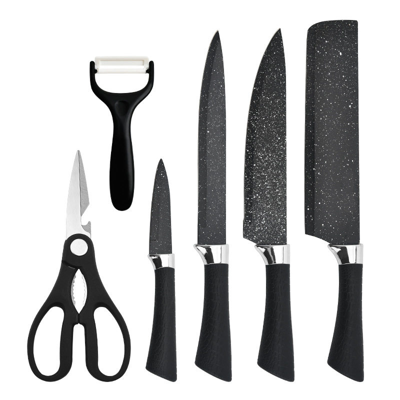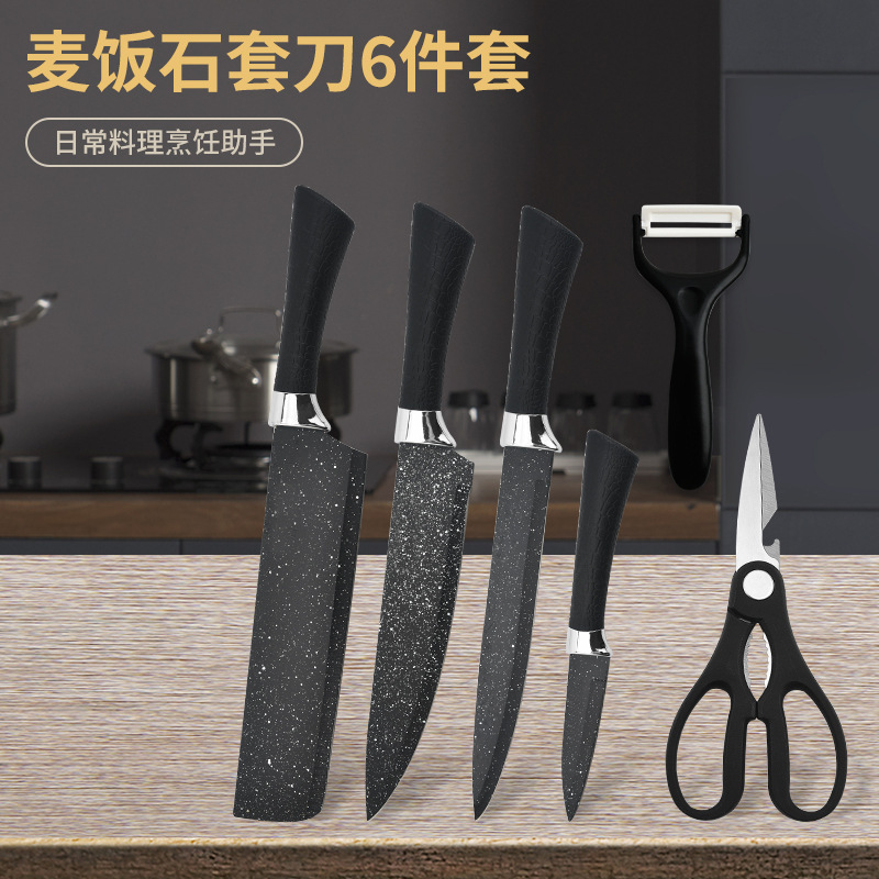 阳江菜刀不锈钢喷漆刀具马蹄柄星空墨饭石纹六件套刀商务礼品批发