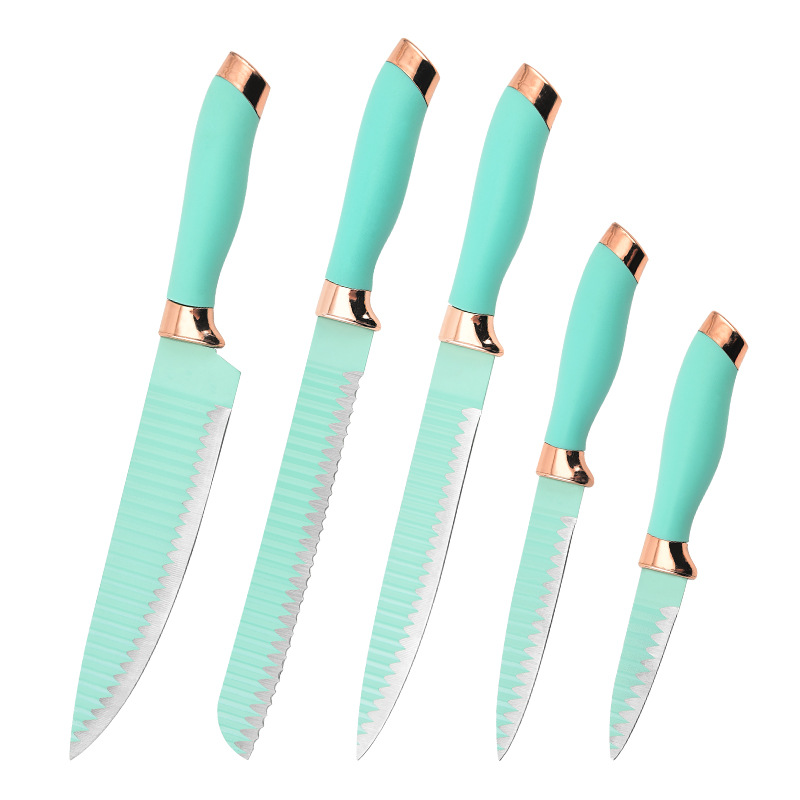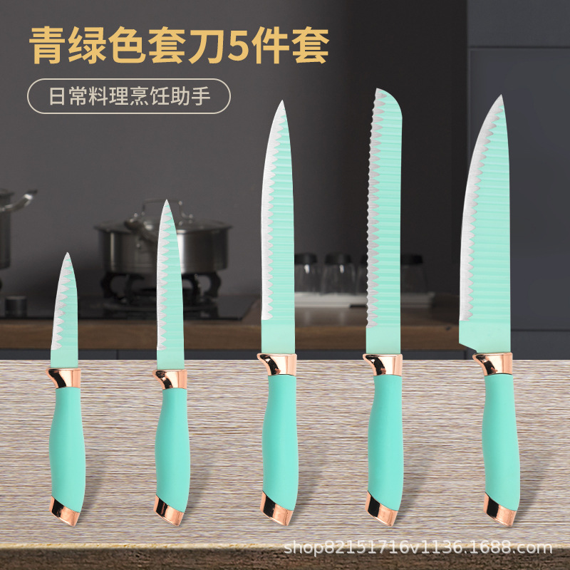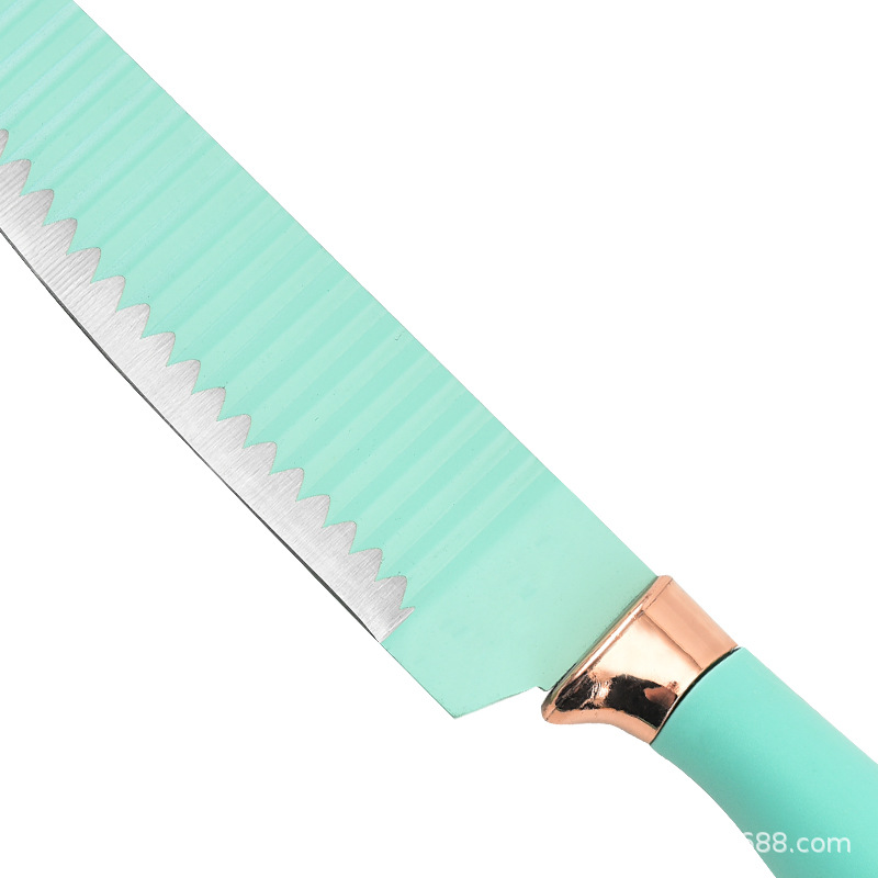现货吊卡商超双电镀头刀具不锈钢喷漆波浪纹单刀双面吸全套knife