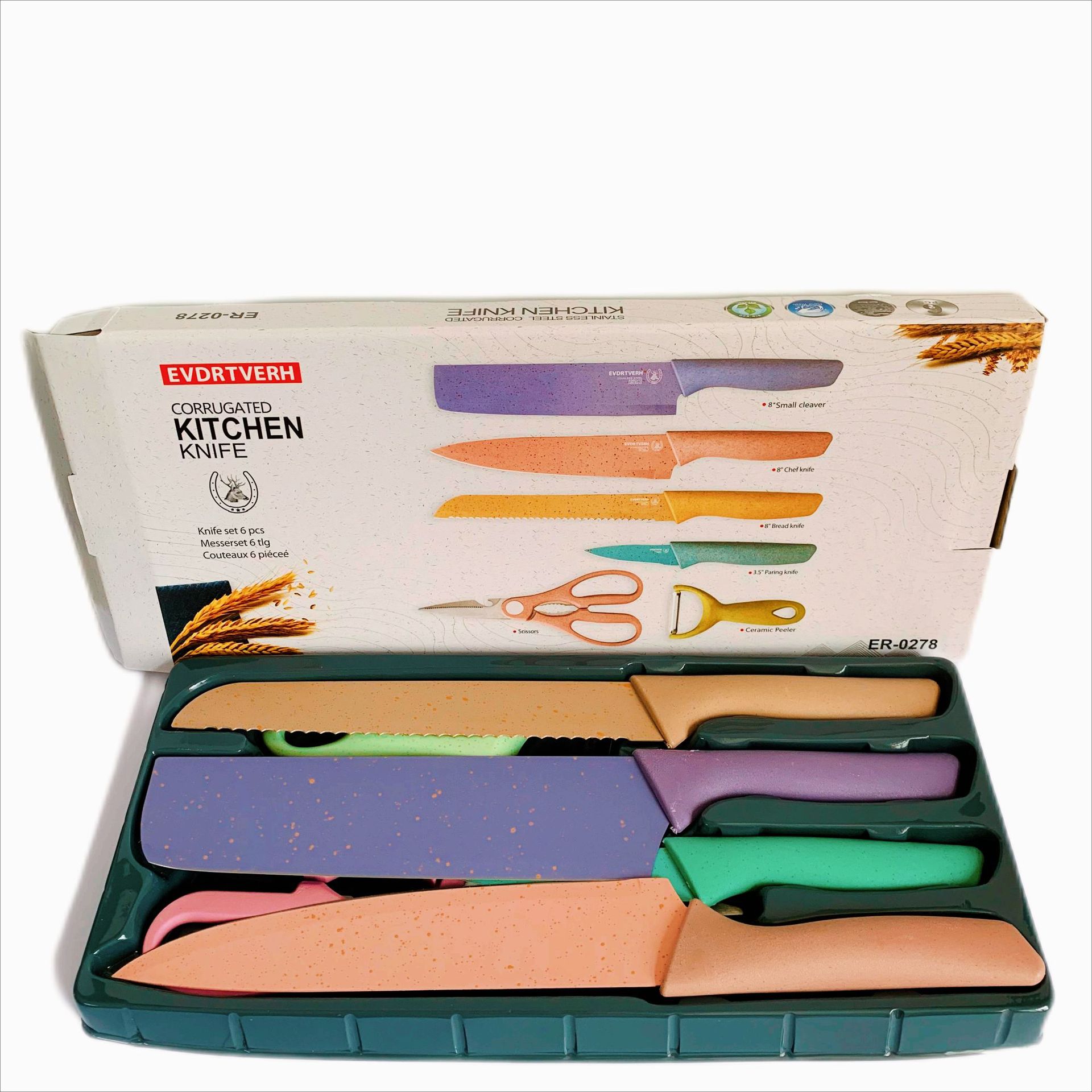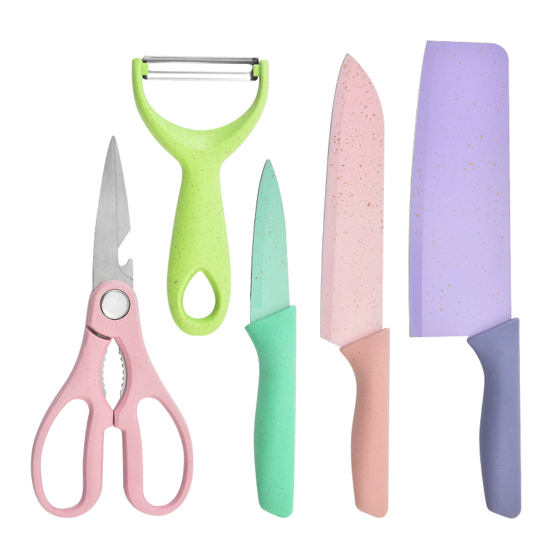 阳江菜刀不锈钢喷漆刀具马卡龙彩色麦杆六件套刀源头工厂现货批发
