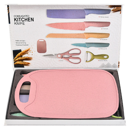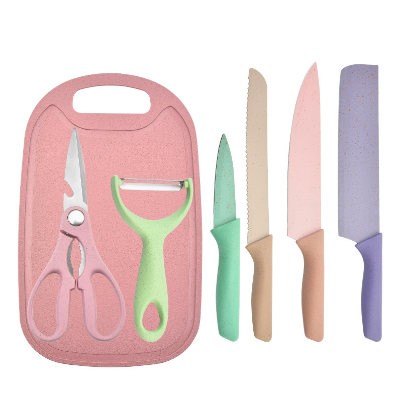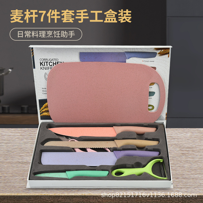 阳江菜刀不锈钢喷漆刀具麦杆七件套加菜板套刀 商务礼品 工厂批发