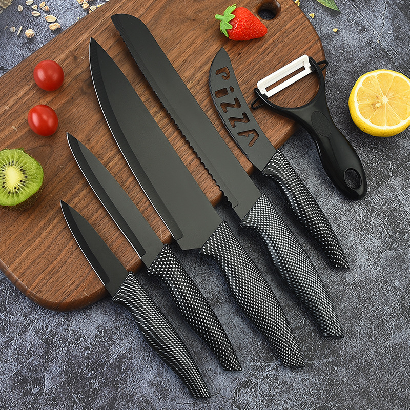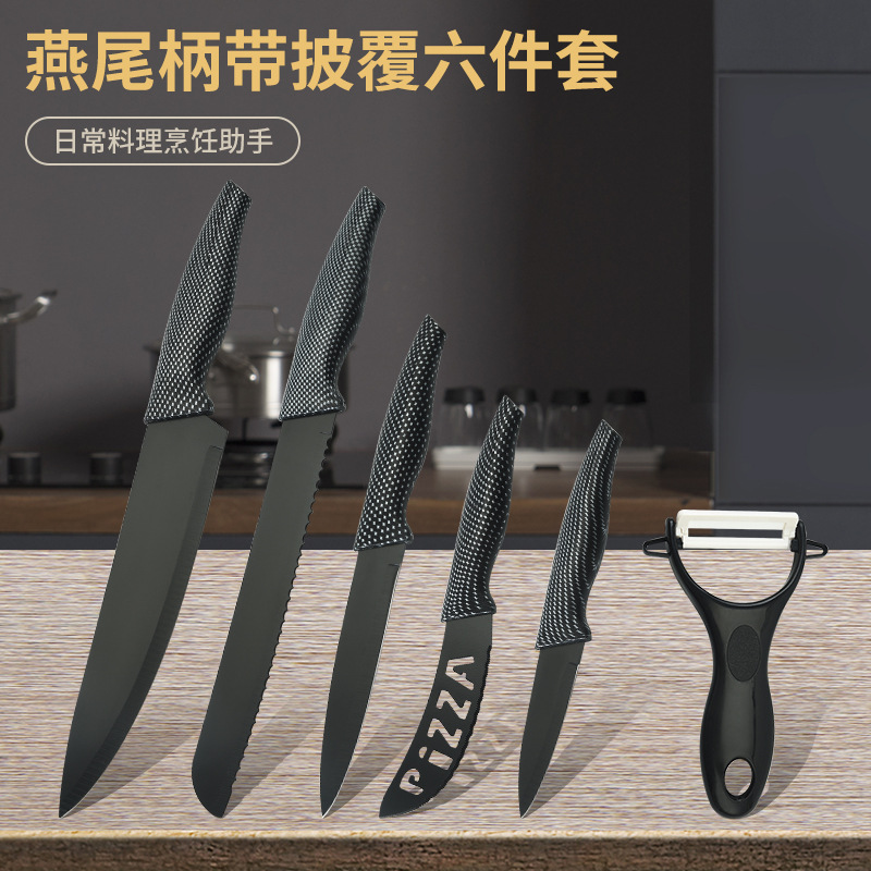 阳江菜刀不锈钢喷漆刀黑色燕尾柄带披覆六件套刀商务礼品源头工厂