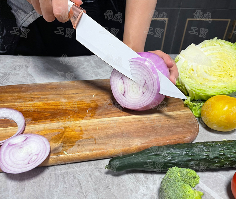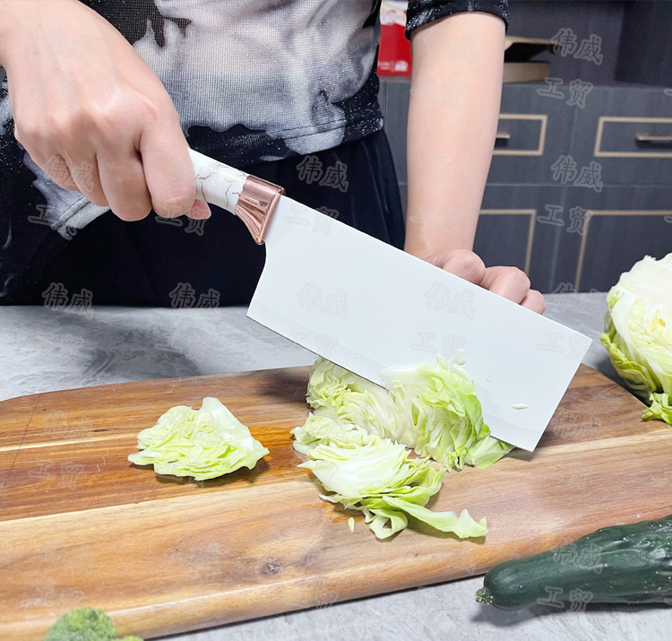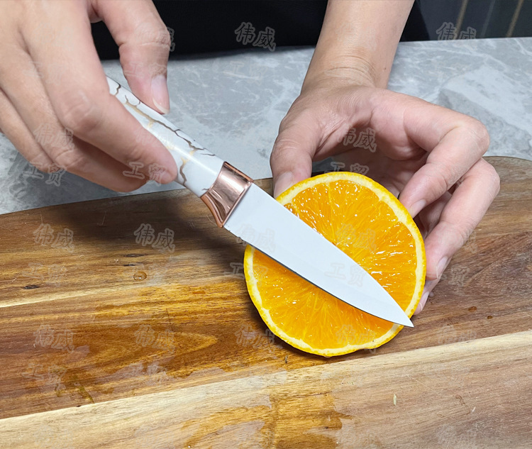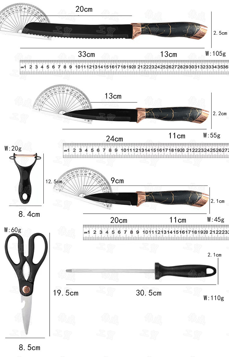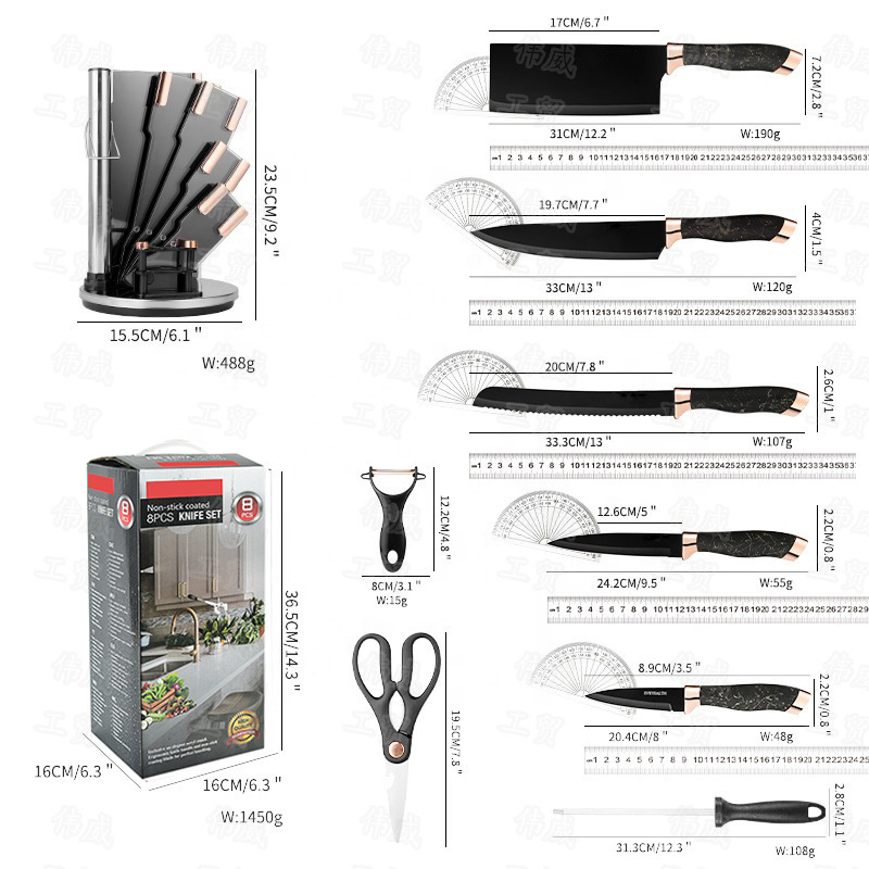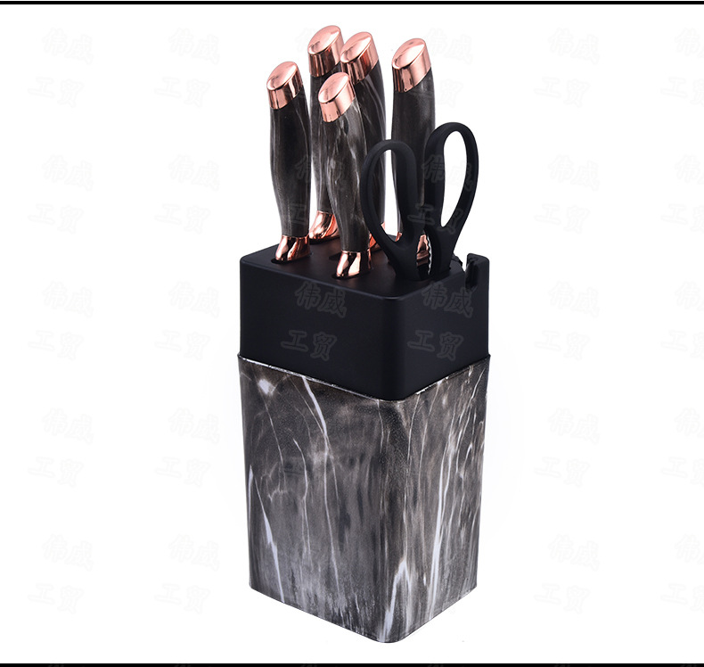 跨境电商直双电镀带旋转刀座厨房套刀批发不锈钢大理石纹喷漆刀具