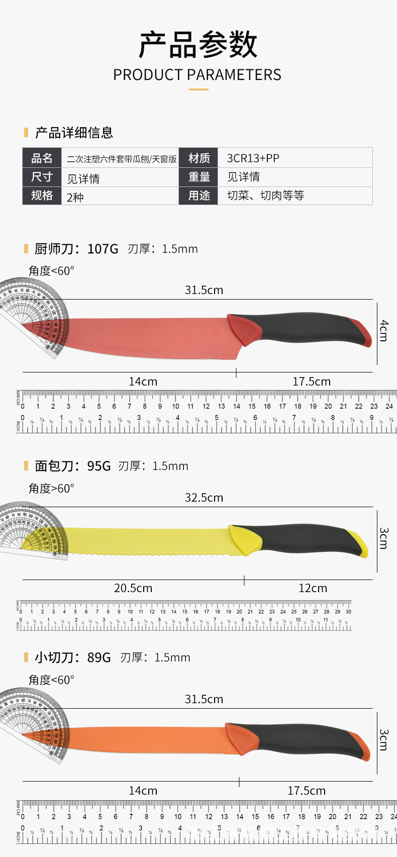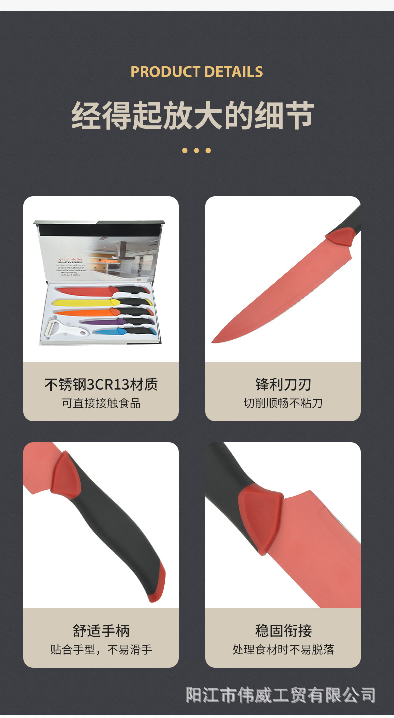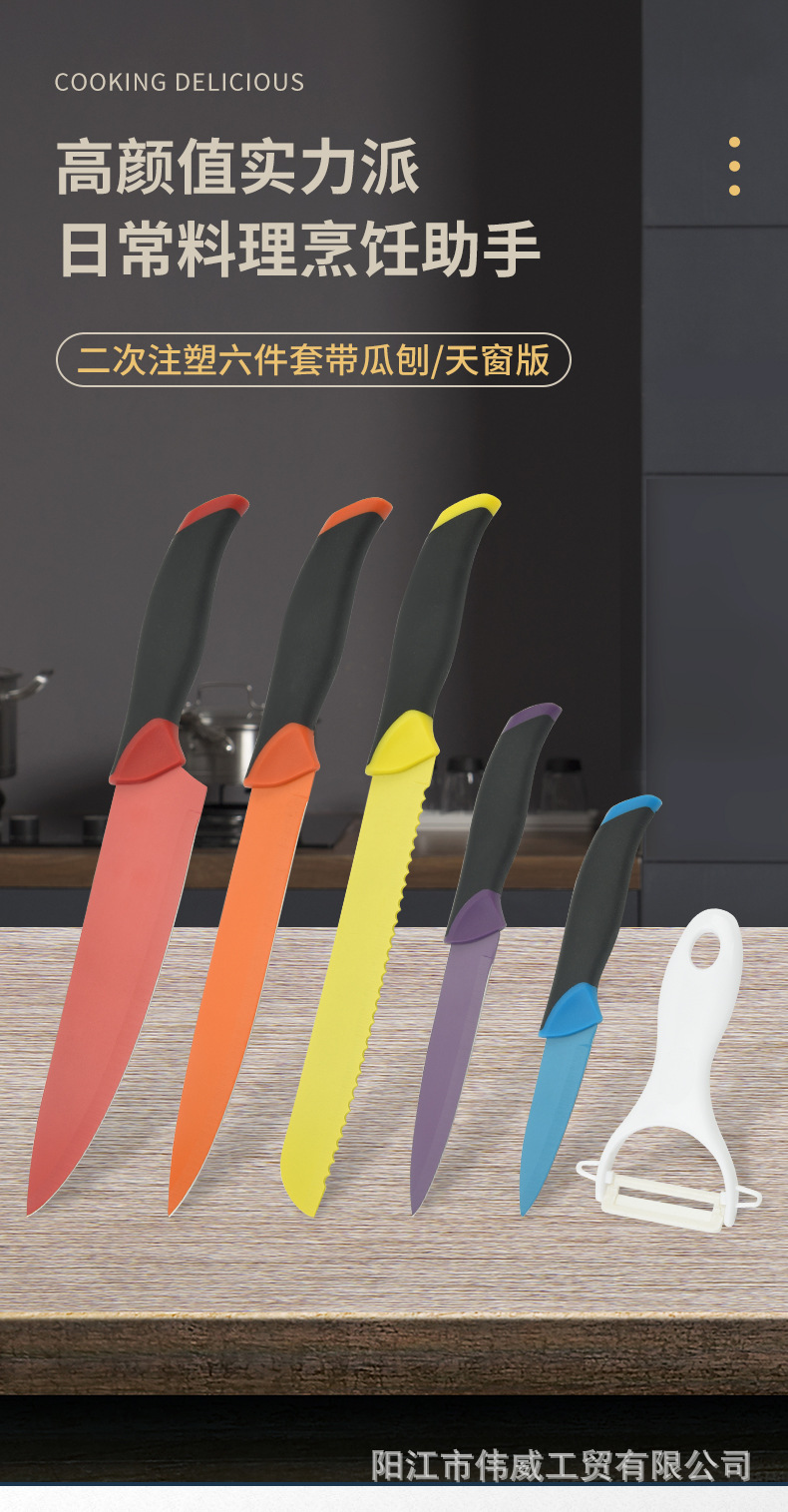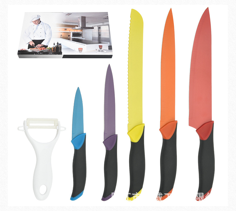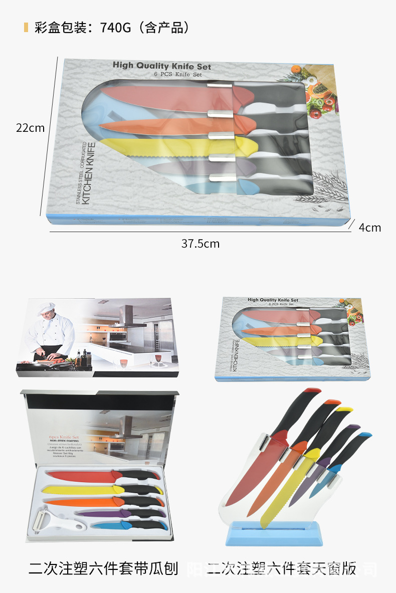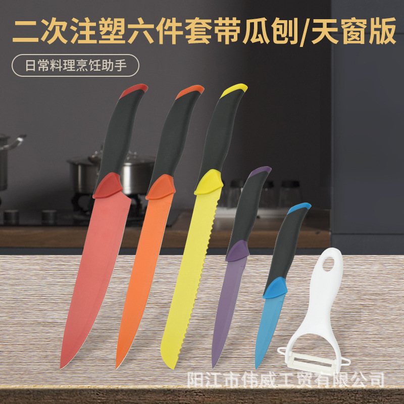 工厂现货供应二次注塑手柄马克龙彩色套刀跨境电商礼品盒套刀批发