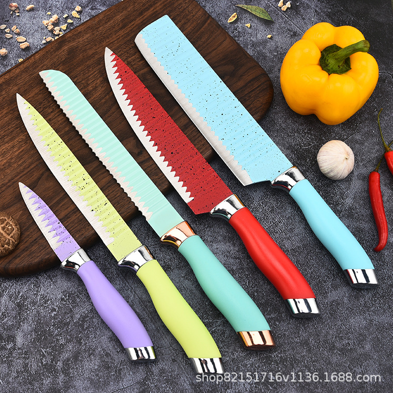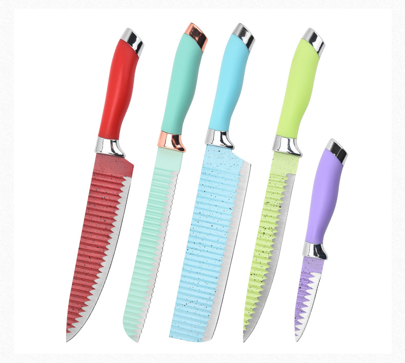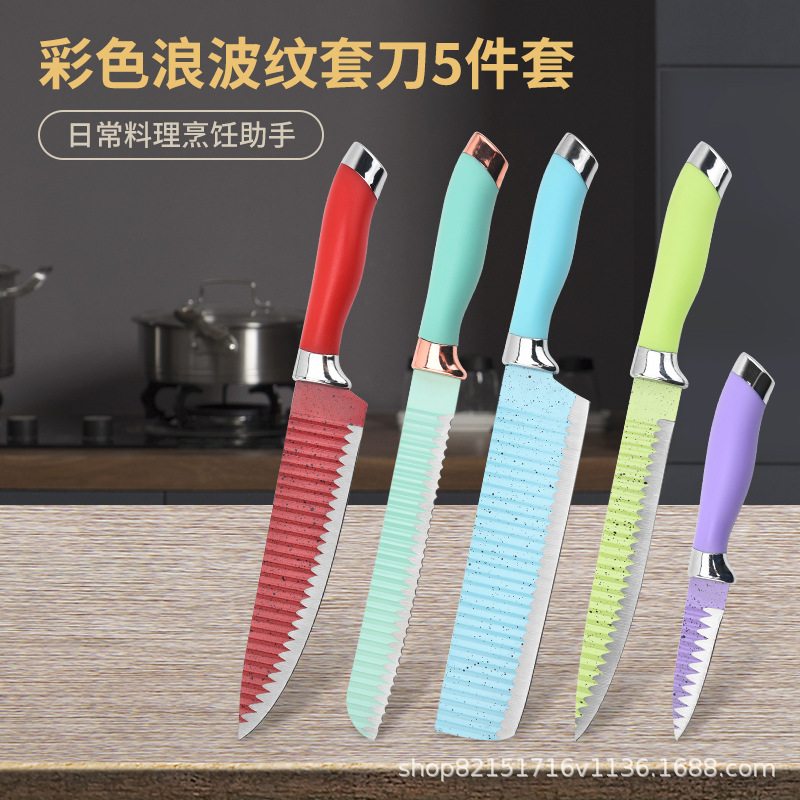 品质刀具双电镀头波浪纹彩色不锈钢喷漆刀具双面吸包装 跨境直供