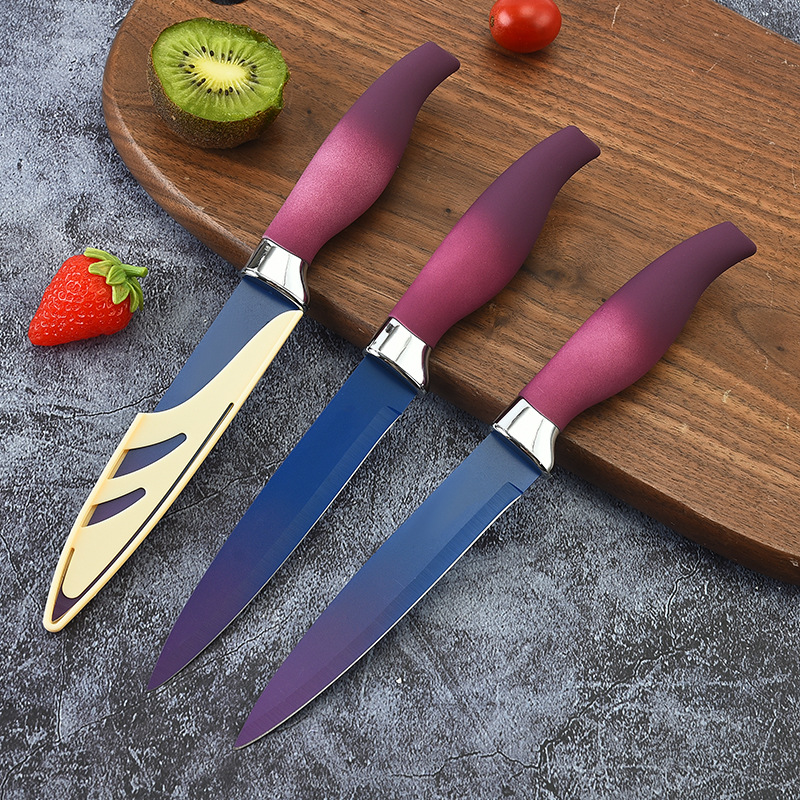 阳江菜刀不锈钢喷漆刀具大肚柄渐变色万用刀带刀套展示盒源头工厂