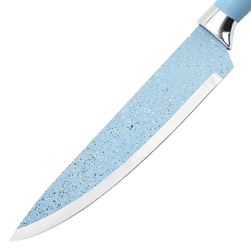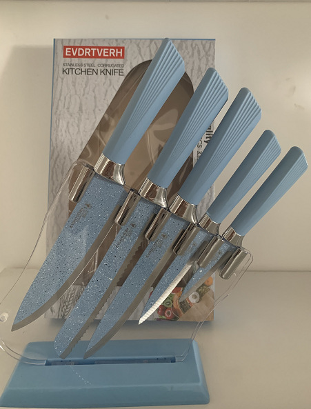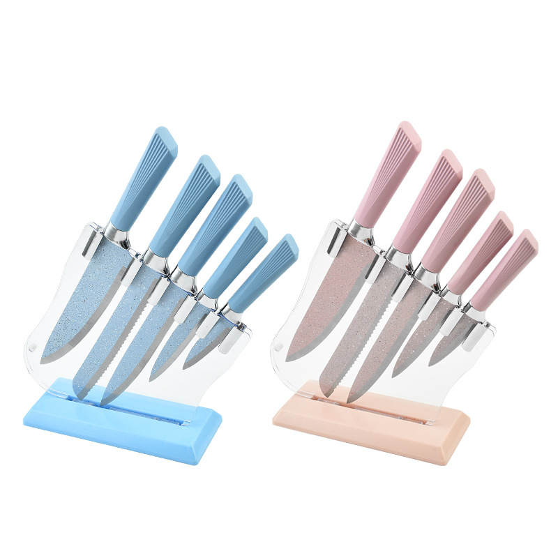 阳江菜刀不锈钢刀具彩色喷点扇贝柄六件套刀带亚克力座刀商务礼品