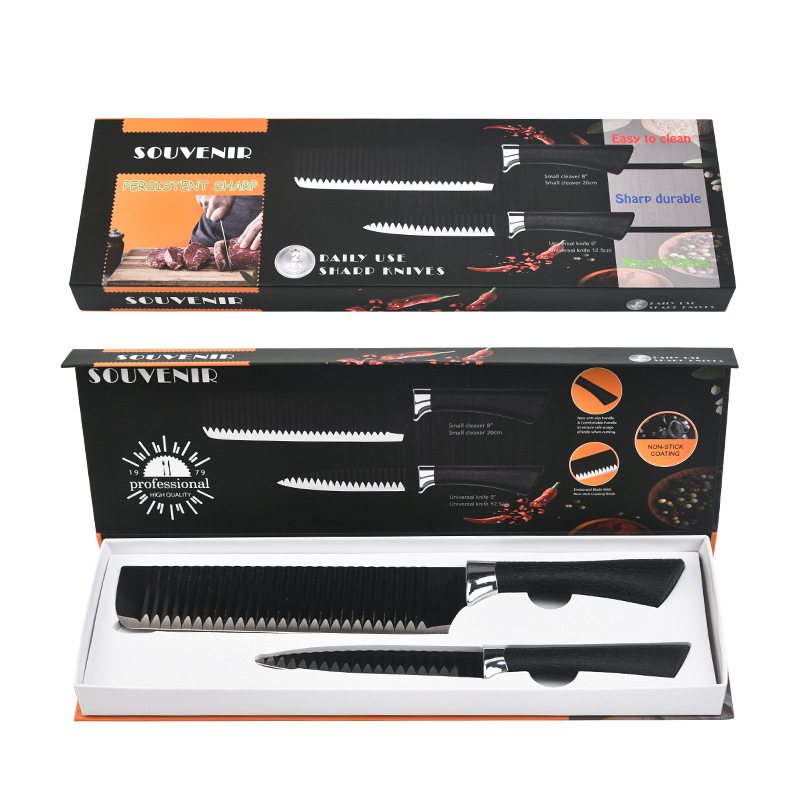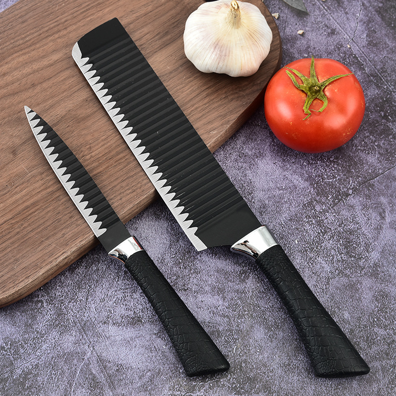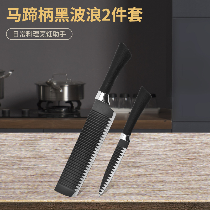 阳江菜刀不锈钢喷漆刀具单电镀头马蹄手柄波浪纹两件套刀源头工厂