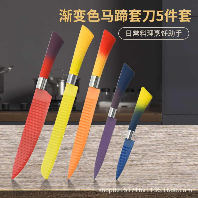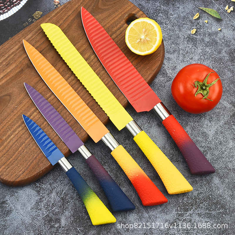 阳江彩色喷漆不锈钢菜刀渐变色马蹄柄波浪纹刀具单刀双面吸knife