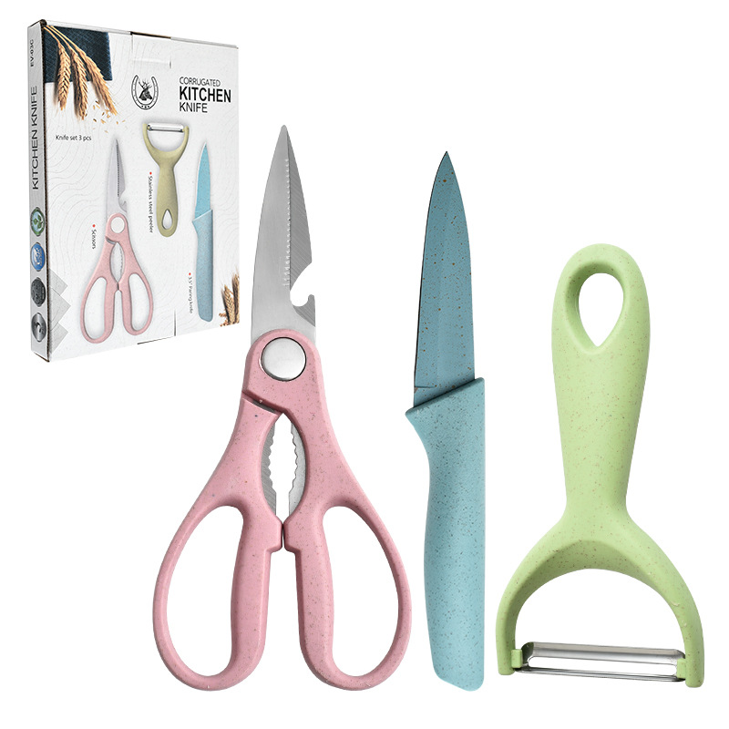 阳江菜刀麦杆三件套刀不锈钢喷漆刀具商务礼品 跨境直供 源头工厂