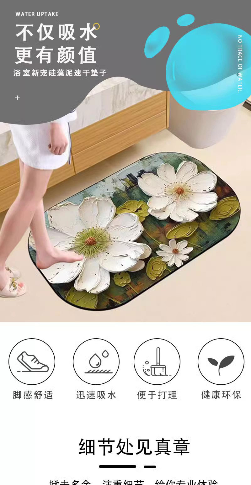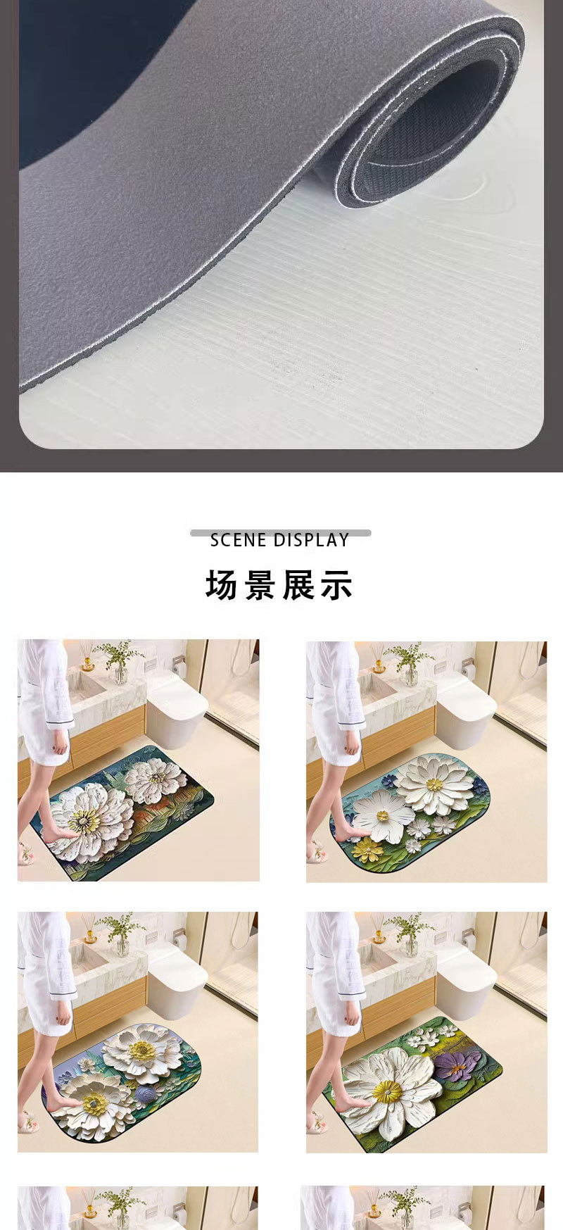 小雏菊3D硅藻泥地垫强吸水速干脚垫卫生间地毯淋浴间门口防滑软垫