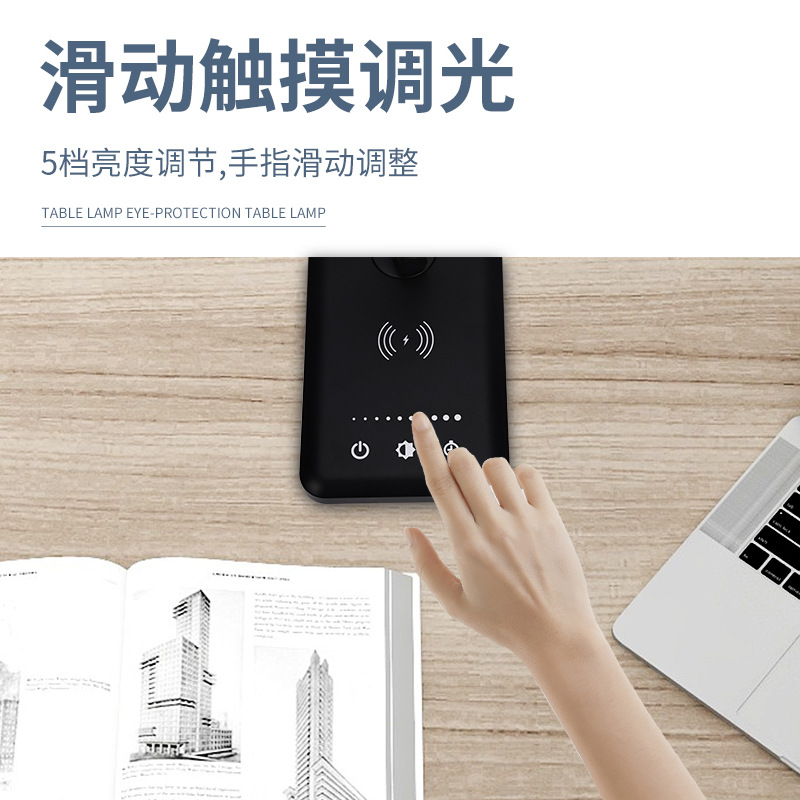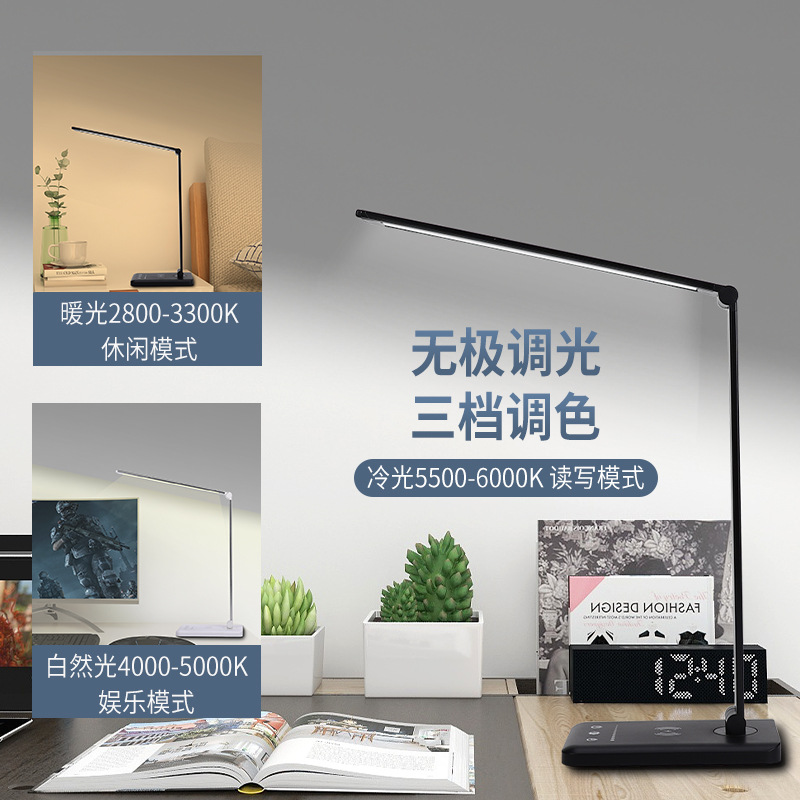 无线充电护眼台灯 触摸折叠铝合金25档调光调色阅读学习LED台灯