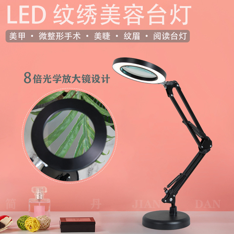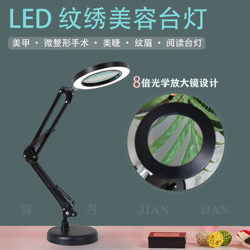 LED长臂台灯化妆美甲美容纹绣美睫工作折叠便携护眼放大镜网红灯