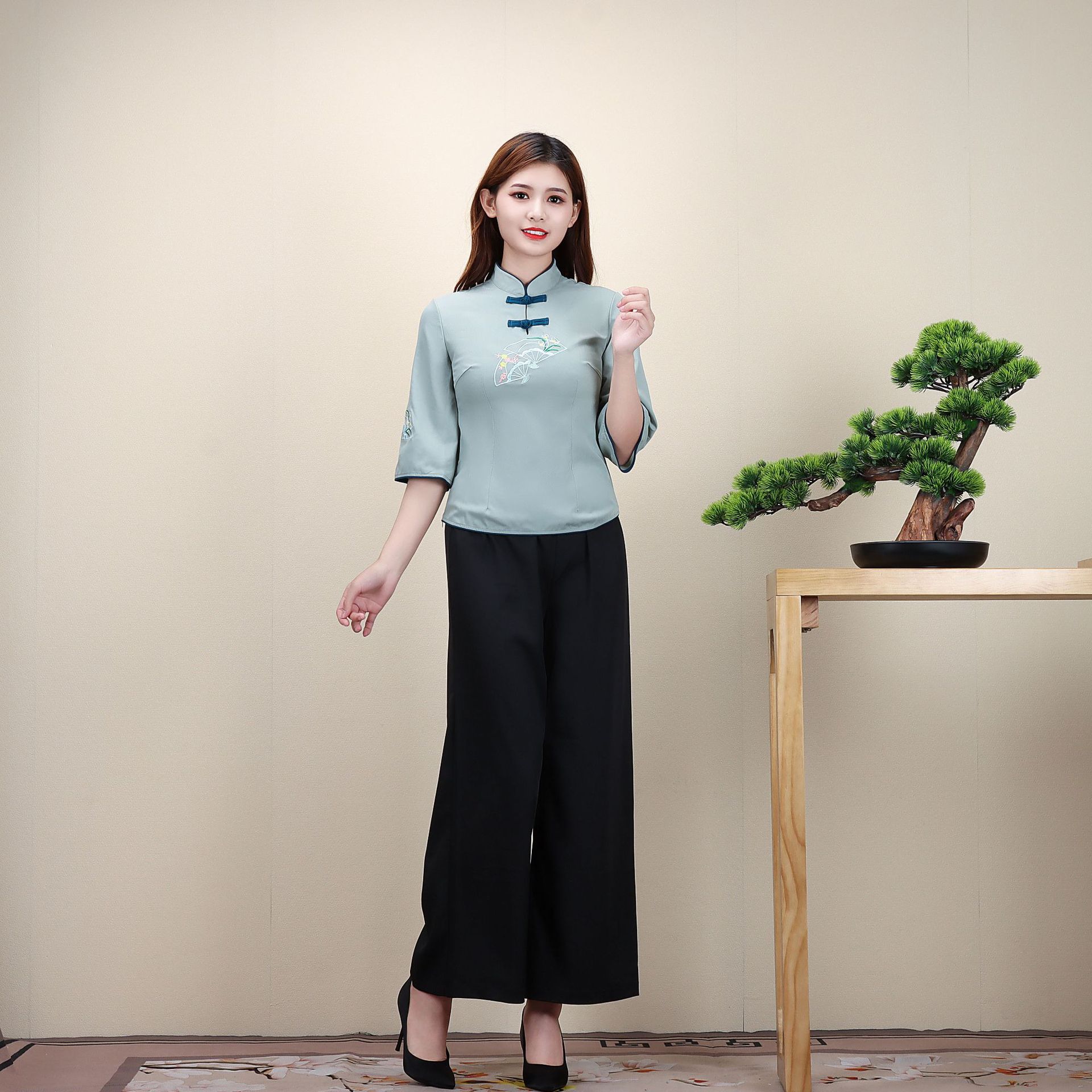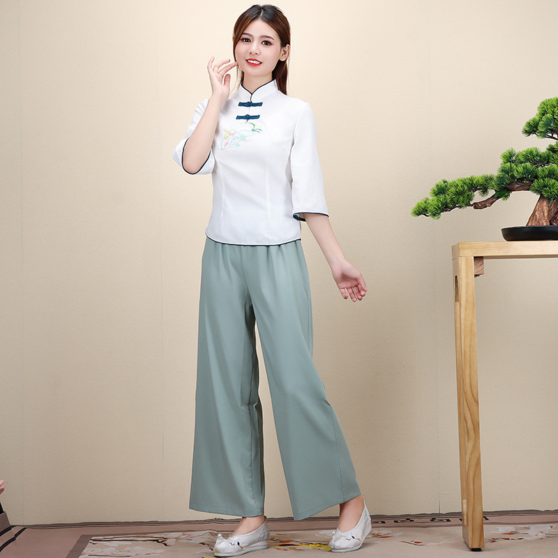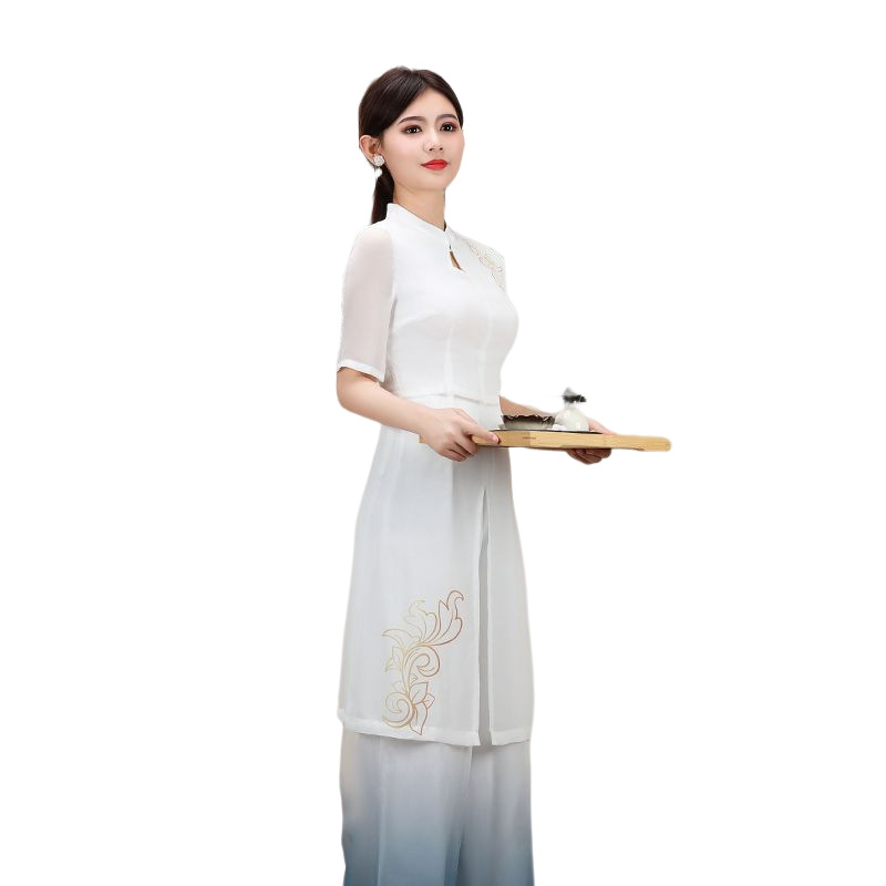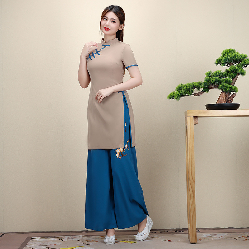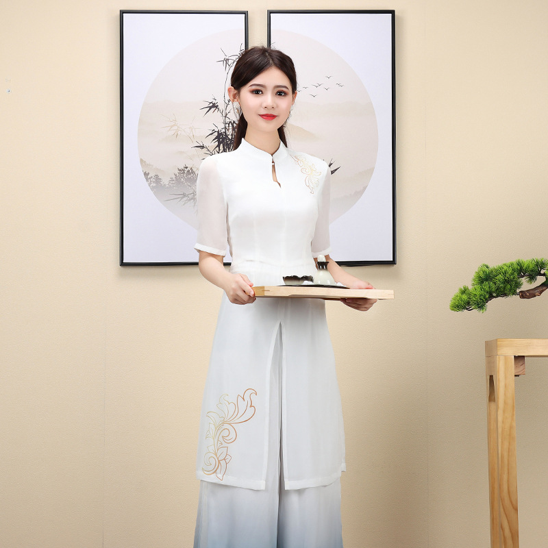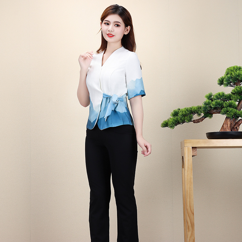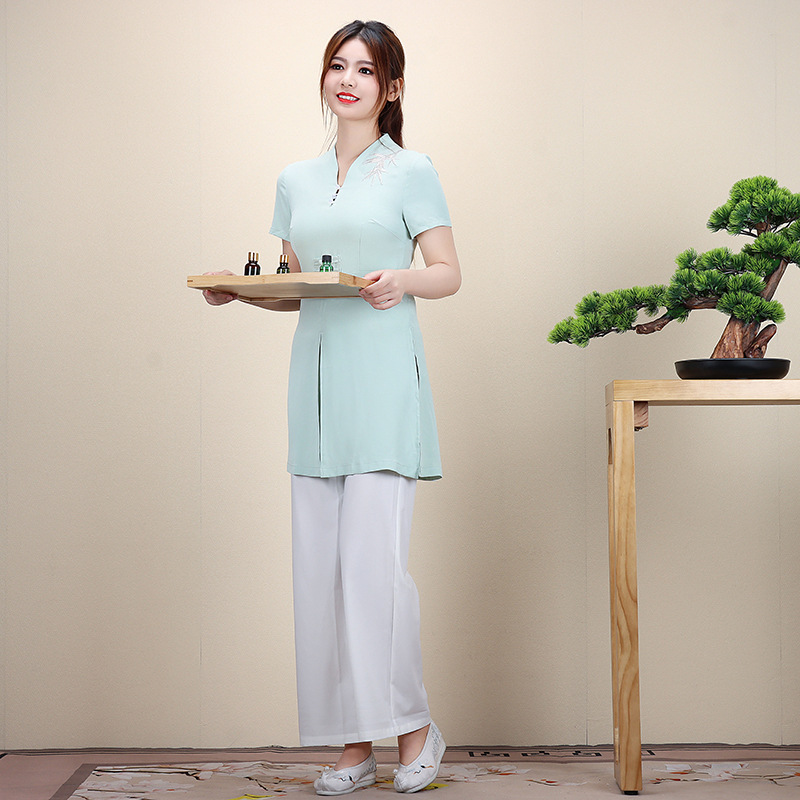 新款女古风茶艺足浴美容技师工作服养生会所制服足疗按摩工装批发