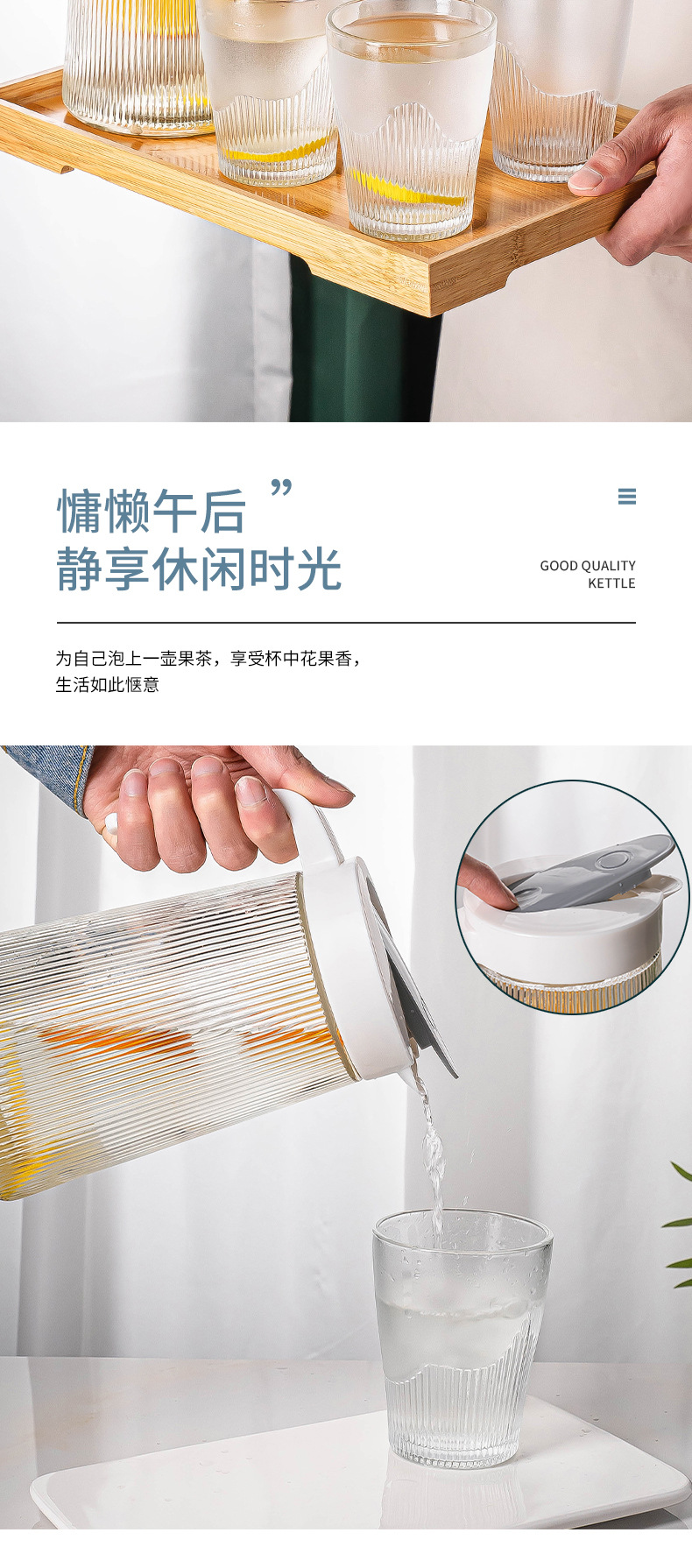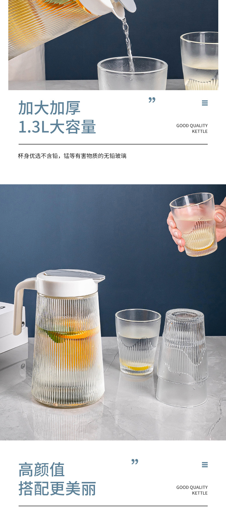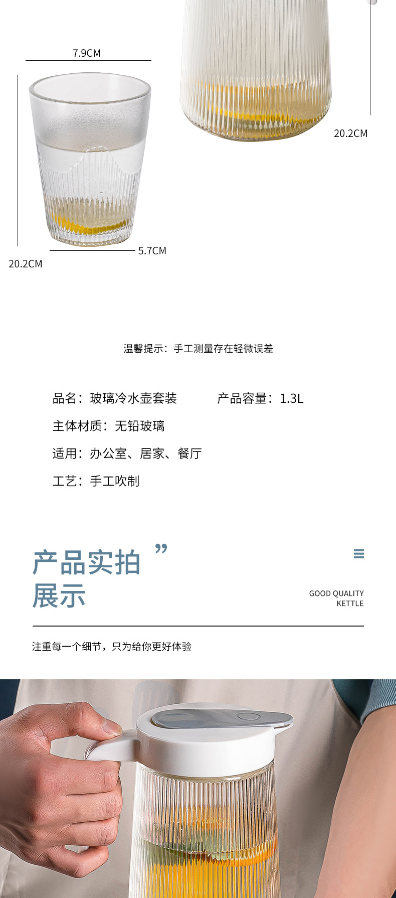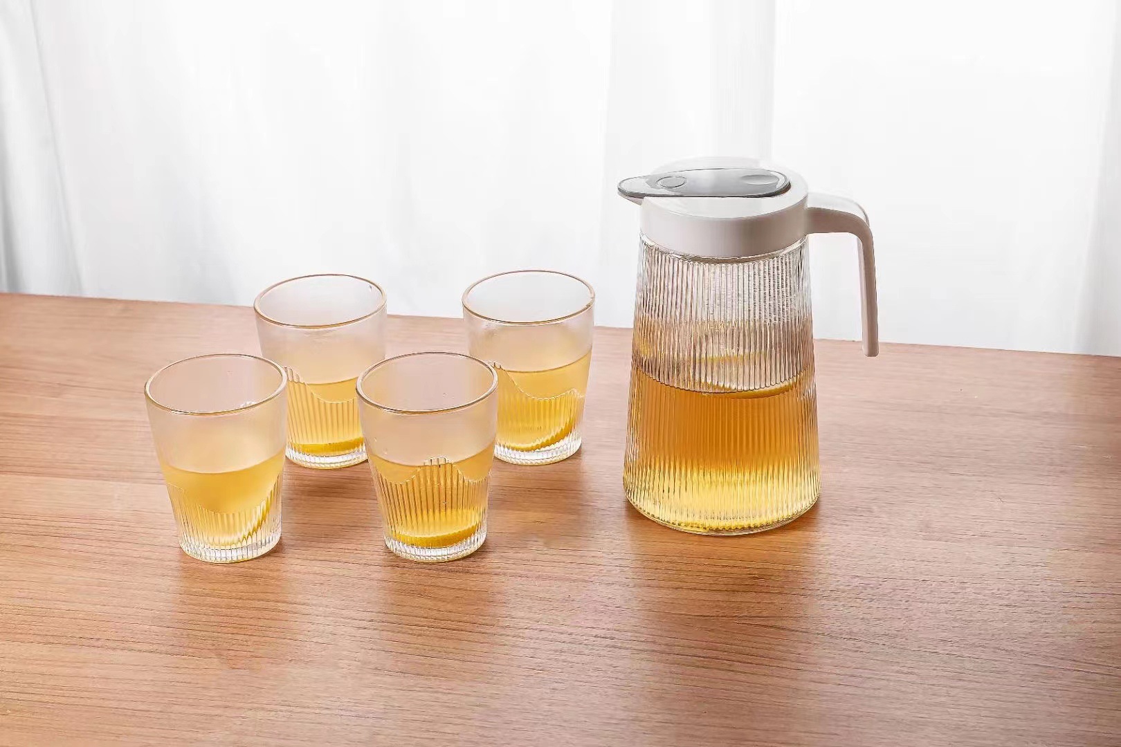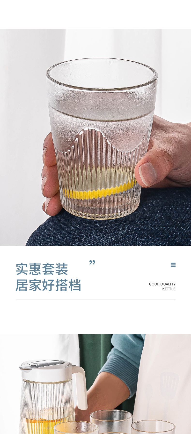 竖条纹玻璃冷水壶套装家用玻璃杯凉水壶五件套果汁壶开业活动礼品