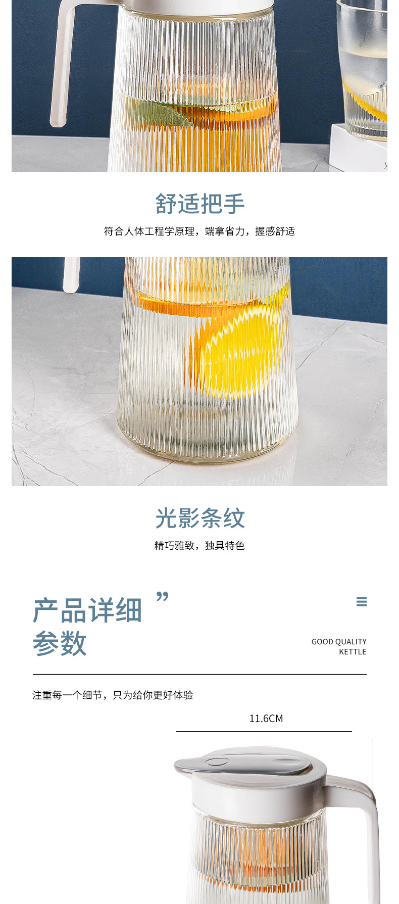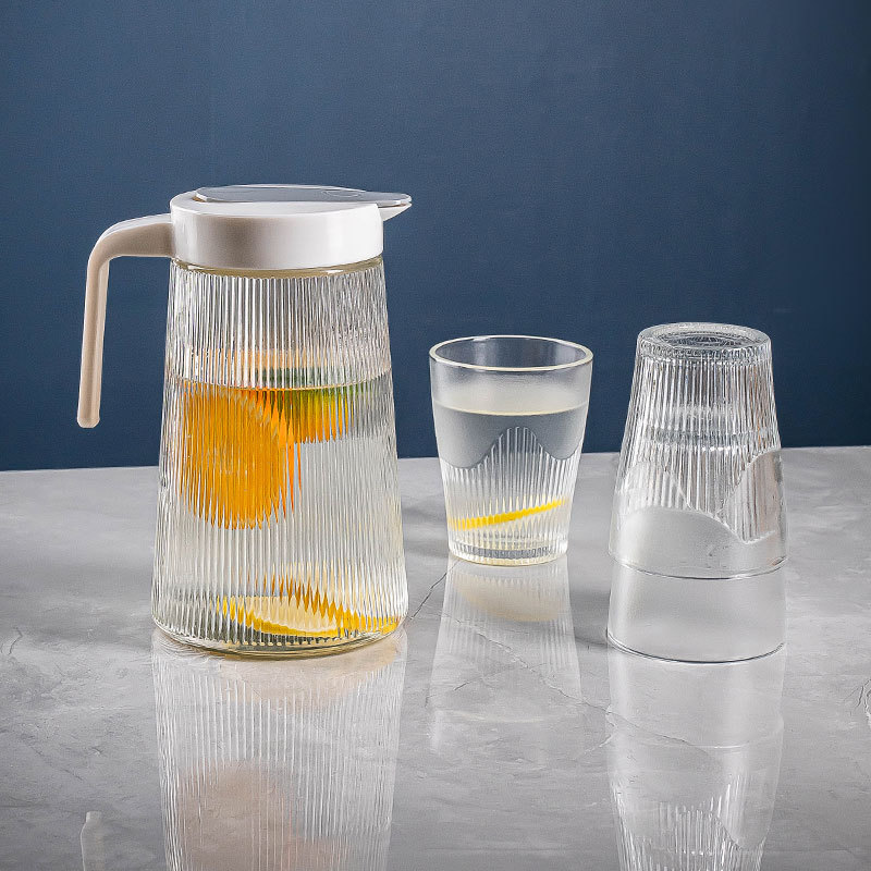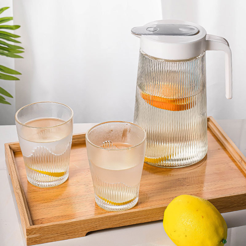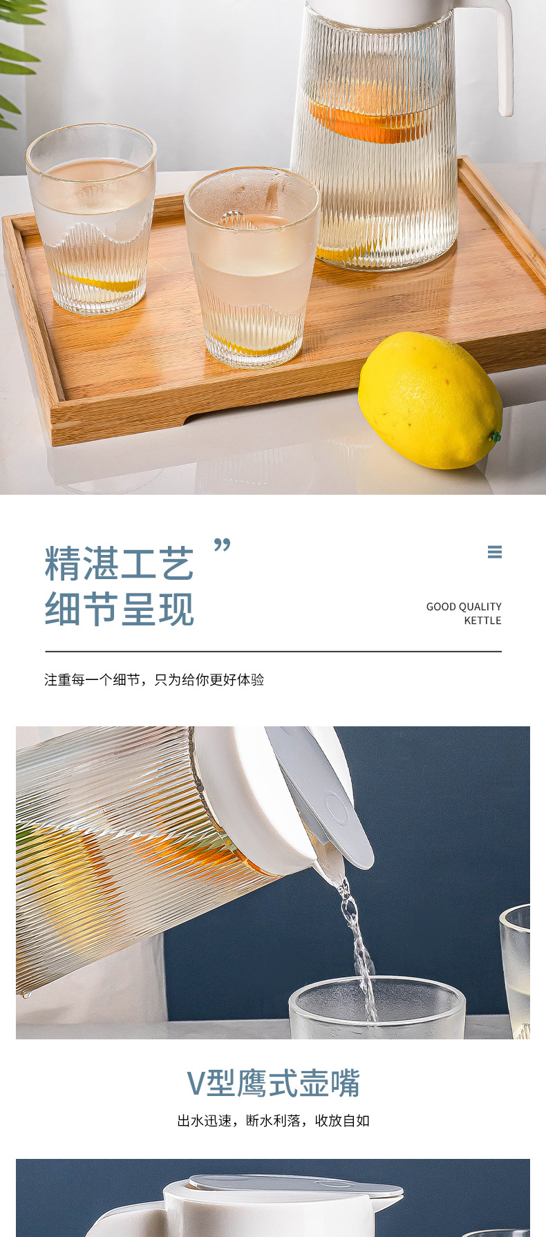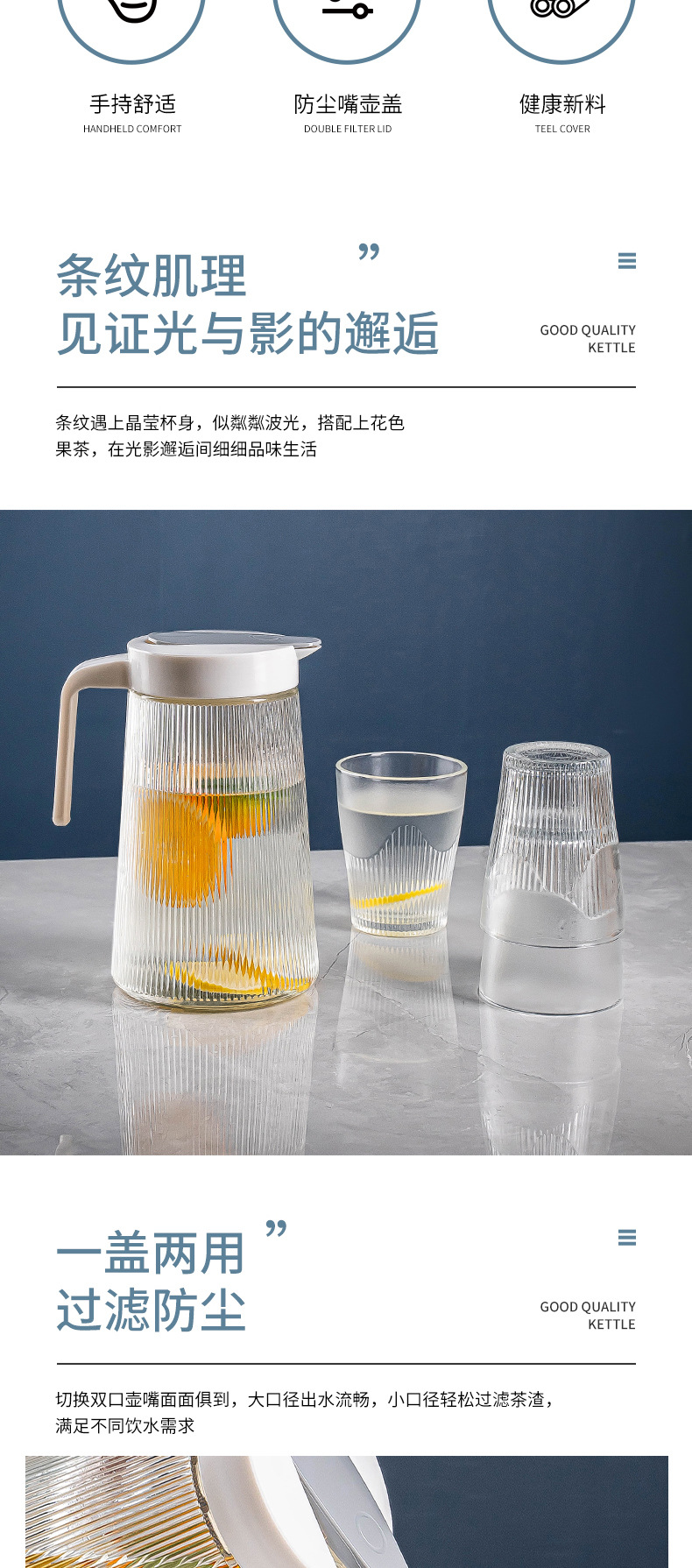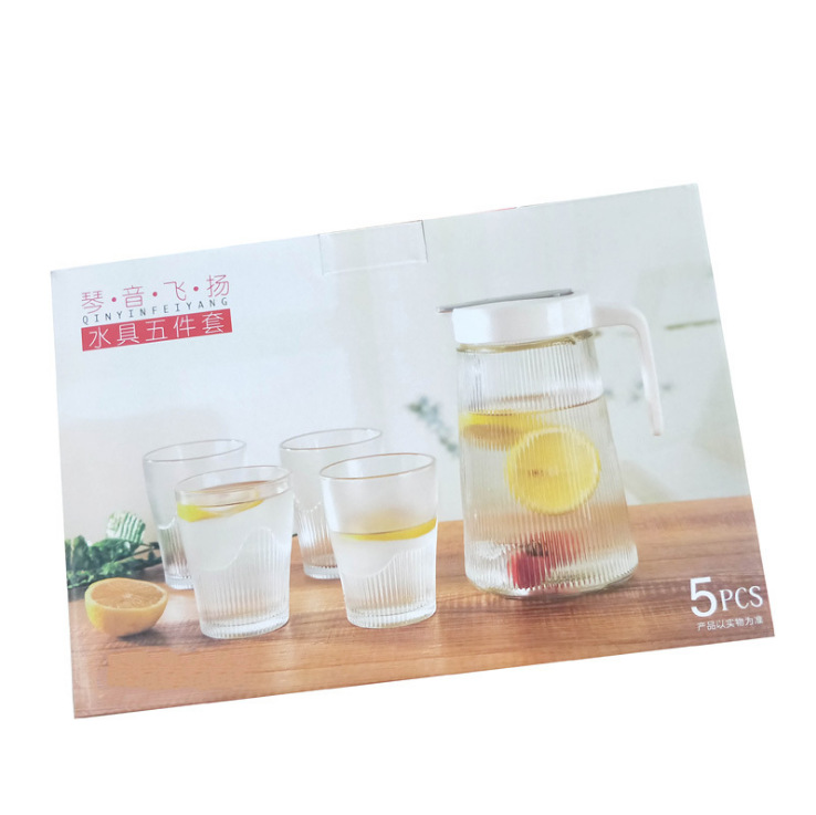 竖条纹玻璃冷水壶套装家用玻璃杯凉水壶五件套果汁壶开业活动礼品